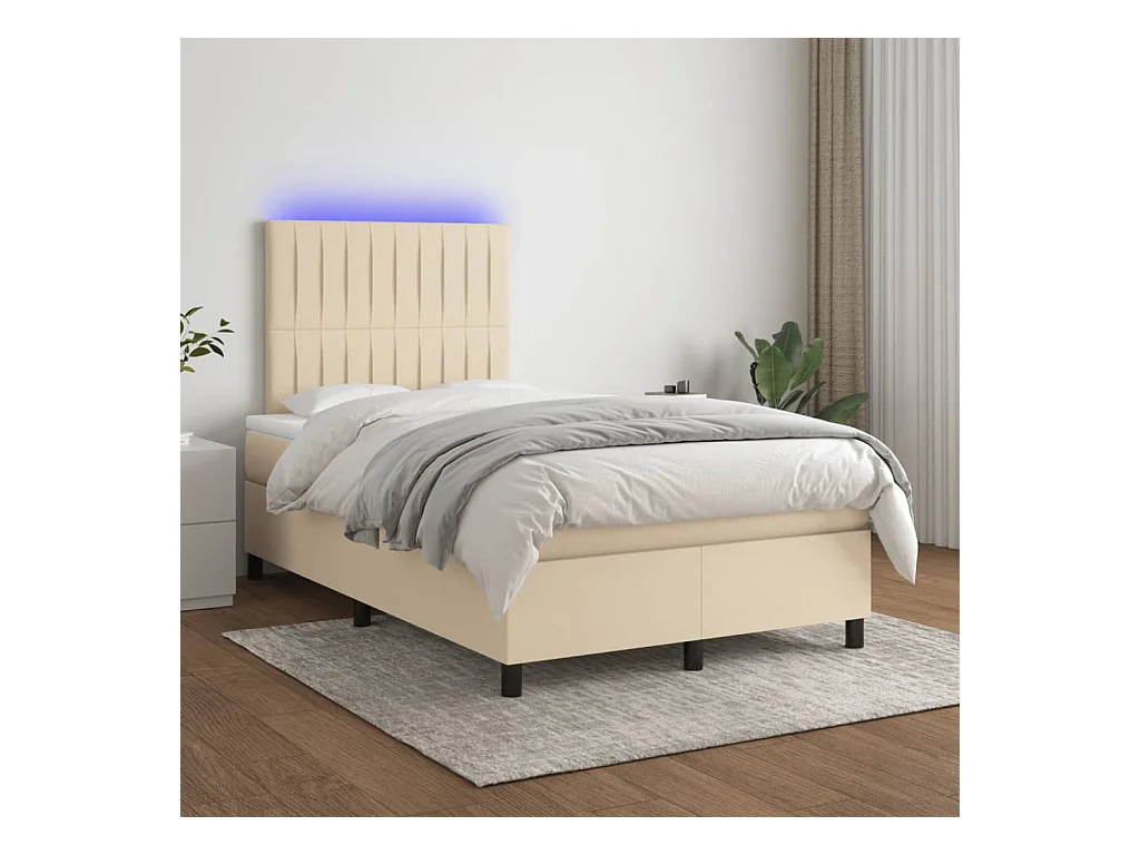 Ensemble complet boxspring + matelas et LED crème 120x190 cm tissu FR81640