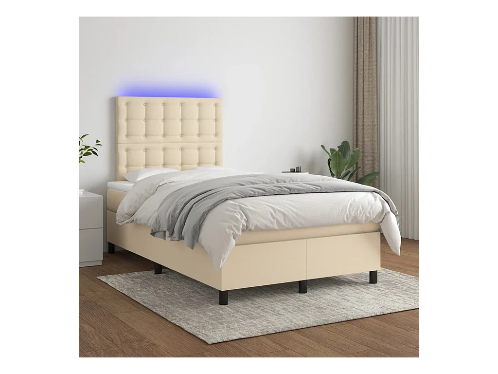 Ensemble complet boxspring + matelas et LED crème 120x190 cm tissu FR94920