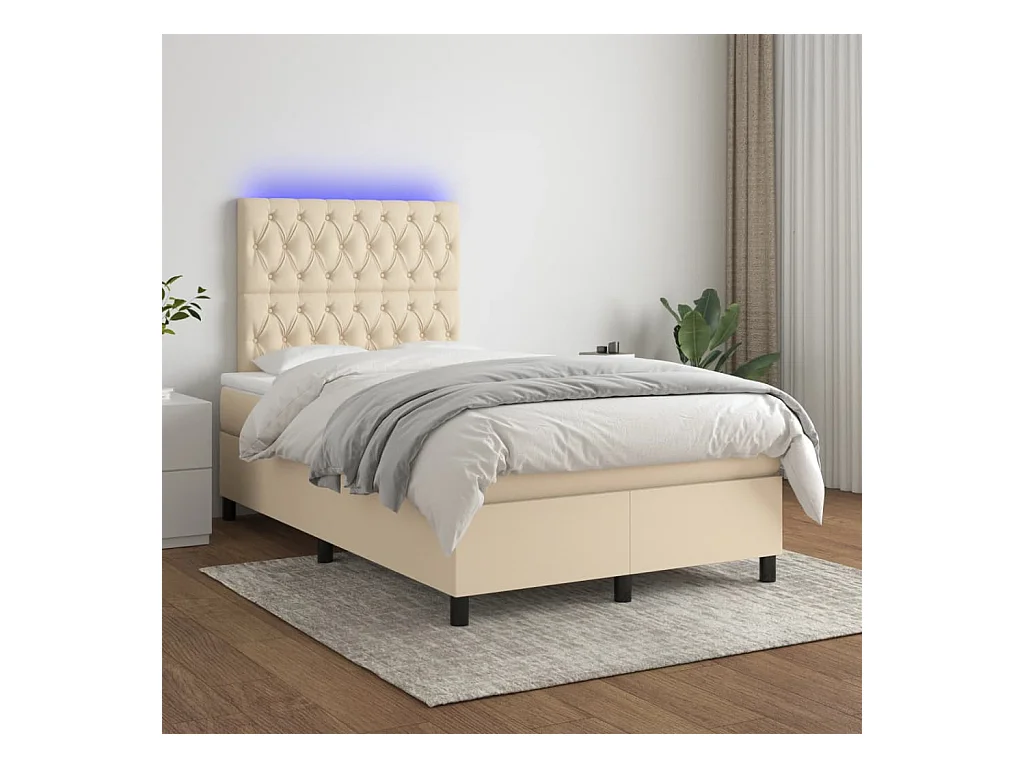 Ensemble complet boxspring + matelas et LED crème 120x190 cm tissu FR95427