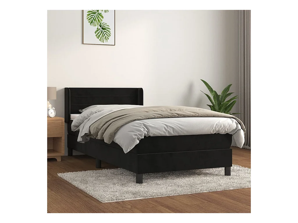 Ensemble complet boxspring + matelas Noir 80x200 cm Velours FR56152