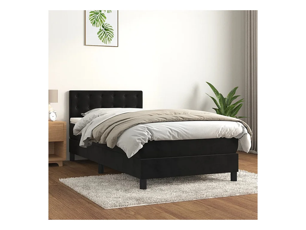 Ensemble complet boxspring + matelas Noir 90x190 cm Velours FR12173