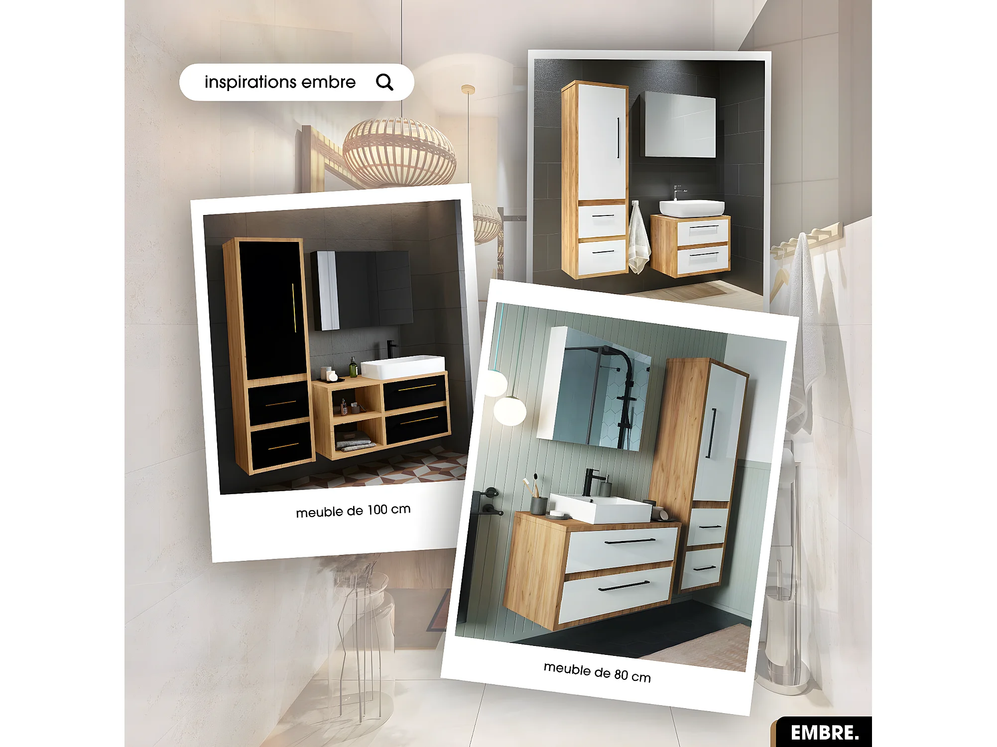 Ensemble complet - de salle de bain - Meuble - Armoire - Vasque avec Siphon OFFERT | EMBRE | Blanc | 80 x 50 x 45 cm