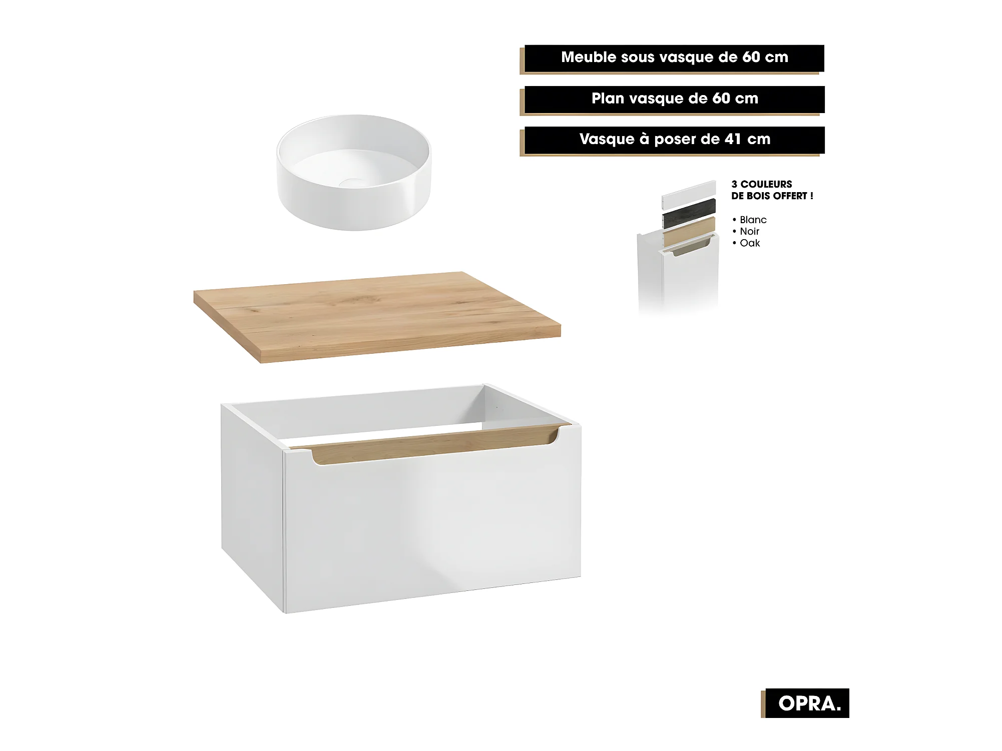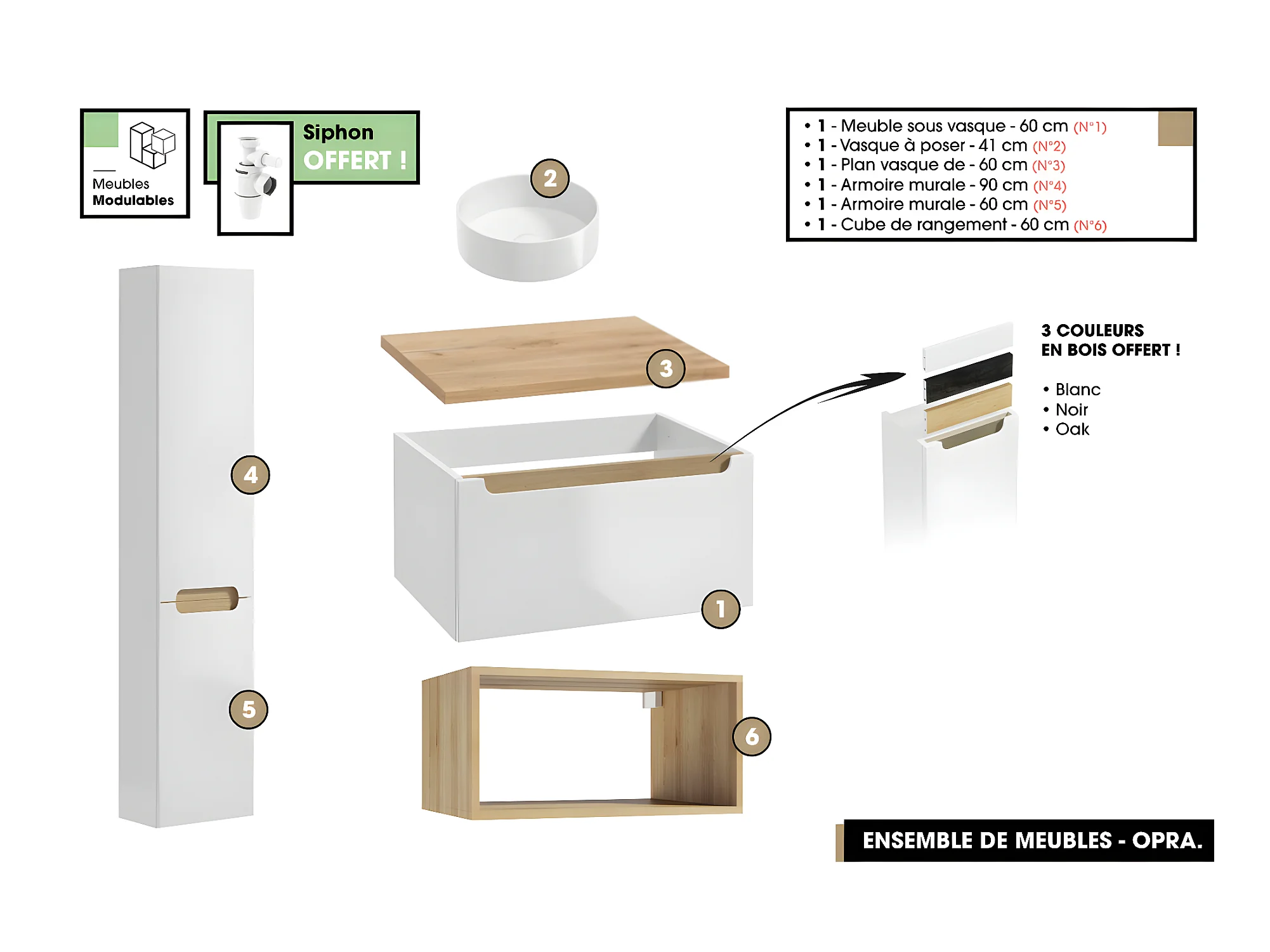 Ensemble complet de salle de bain - Meuble - Armoires - Cube - Vasque à poser avec Siphon OFFERT | OPRA | 60 x 30 x 45 cm