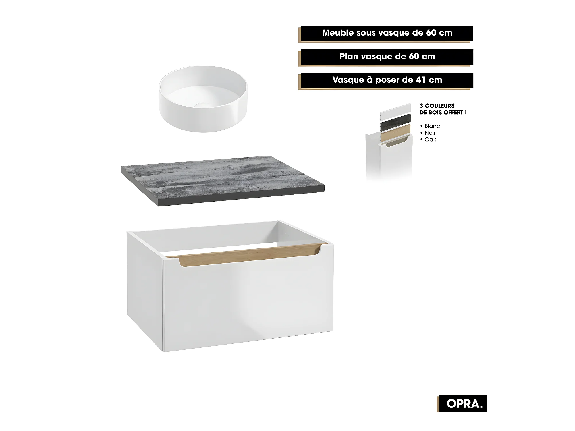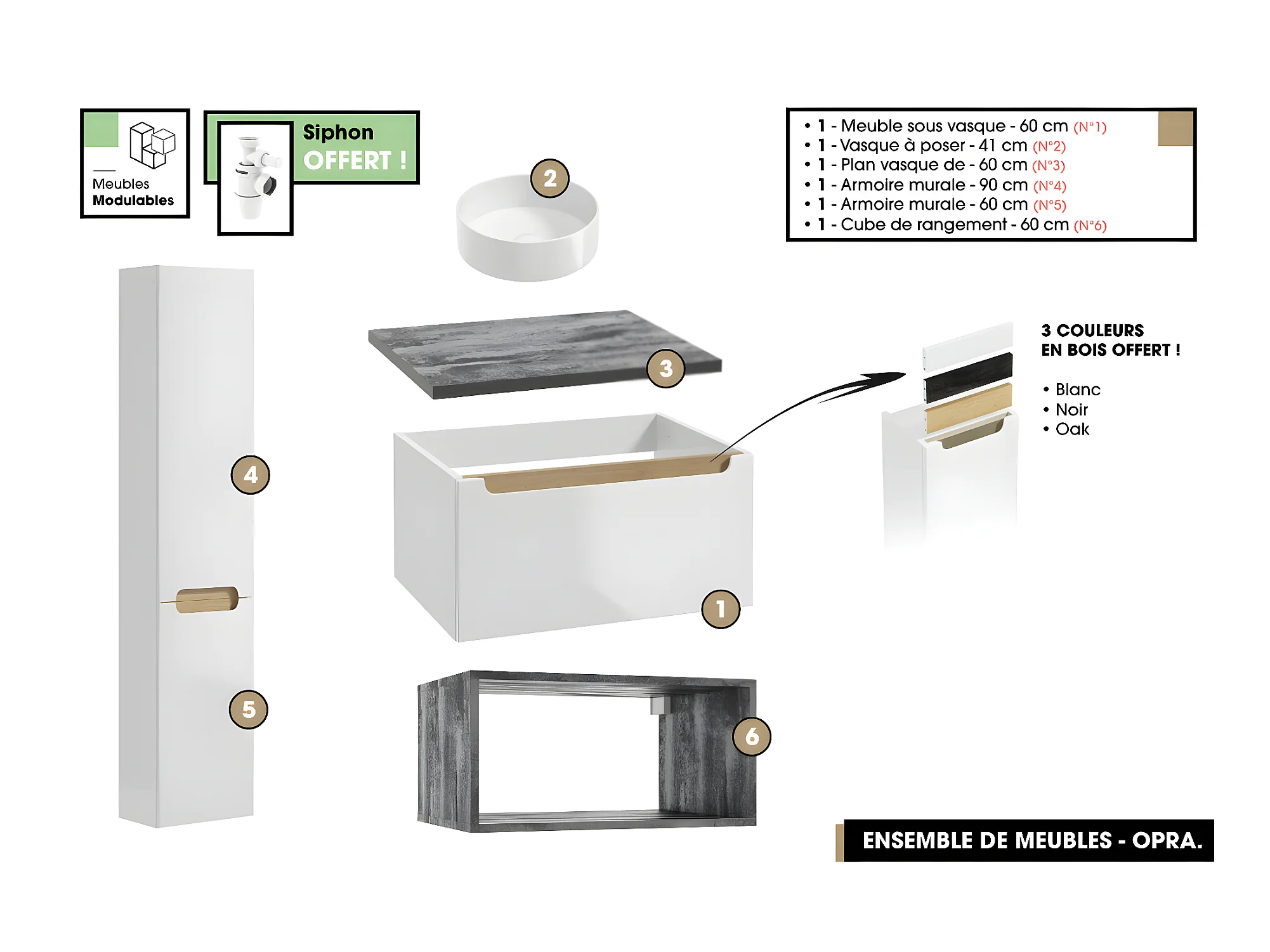 Ensemble complet de salle de bain - Meuble - Armoires - Cube - Vasque à poser avec Siphon OFFERT | OPRA | 60 x 30 x 45 cm