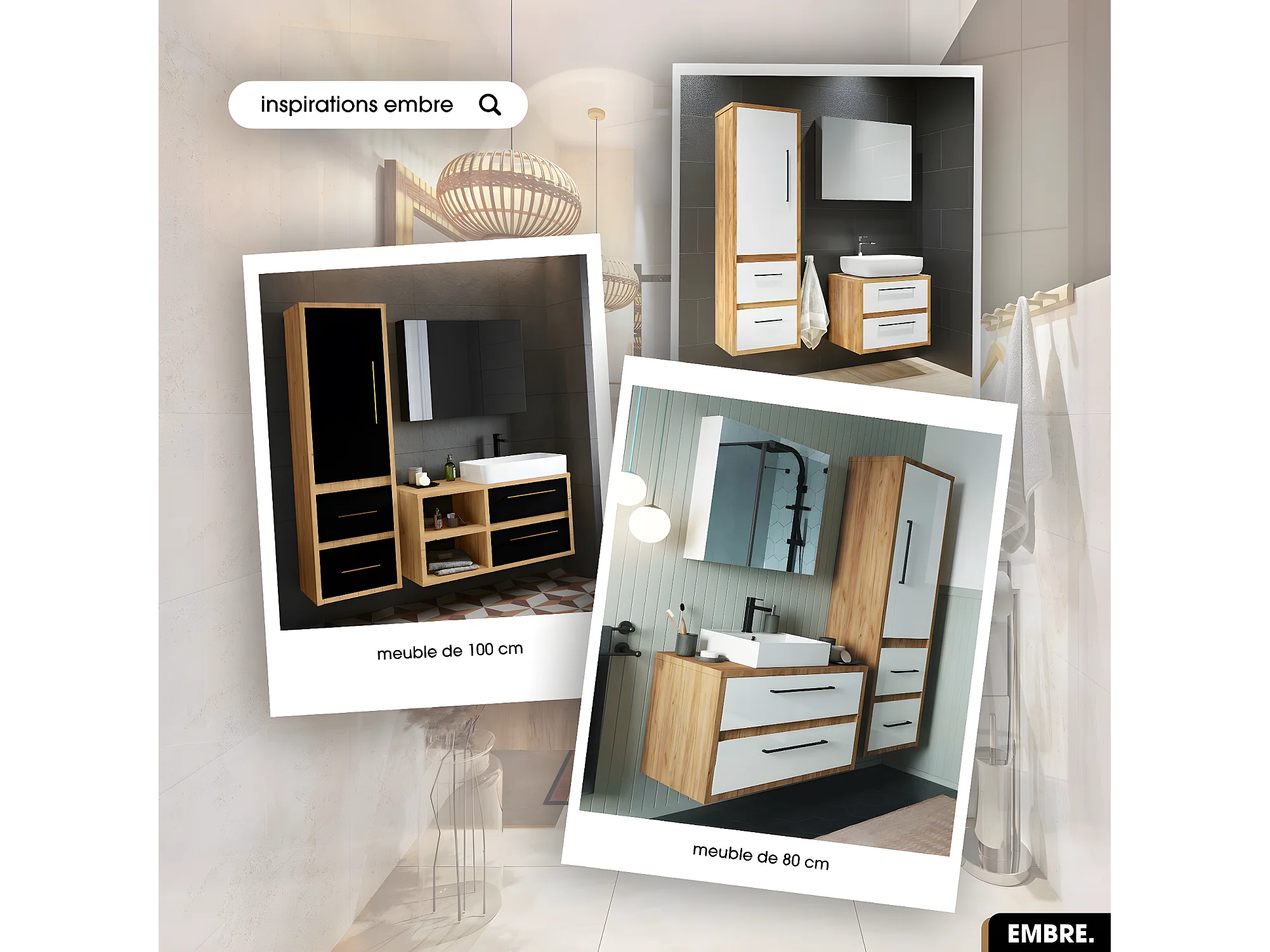 Ensemble complet - de salle de bain - Meuble - Miroir/Armoire - Colonne - Vasque avec Siphon OFFERT | EMBRE | Noir | 80 x 50 x 45 cm