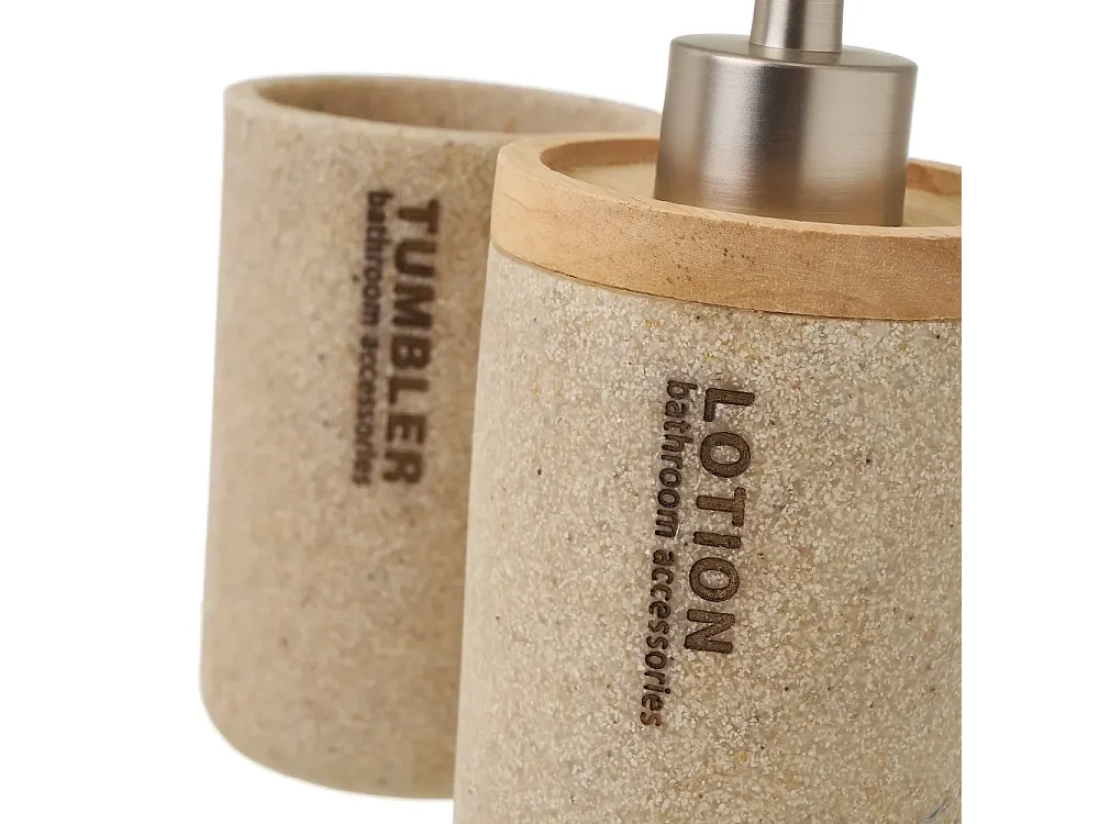 Ensemble d'accessoires salle de bain 3 pièces, set salle de bain avec distributeur de savon en polyrésine/bois coloris beige