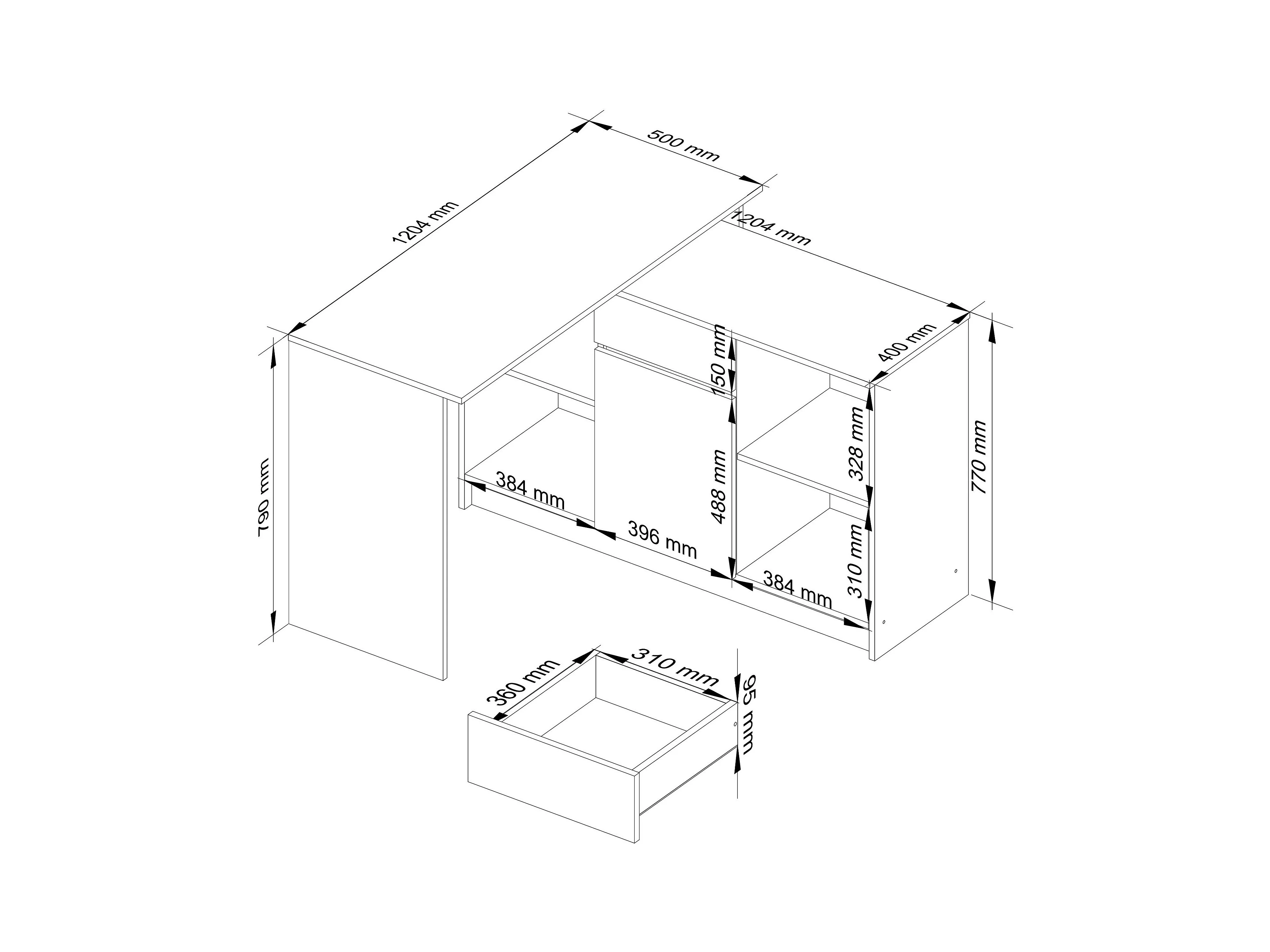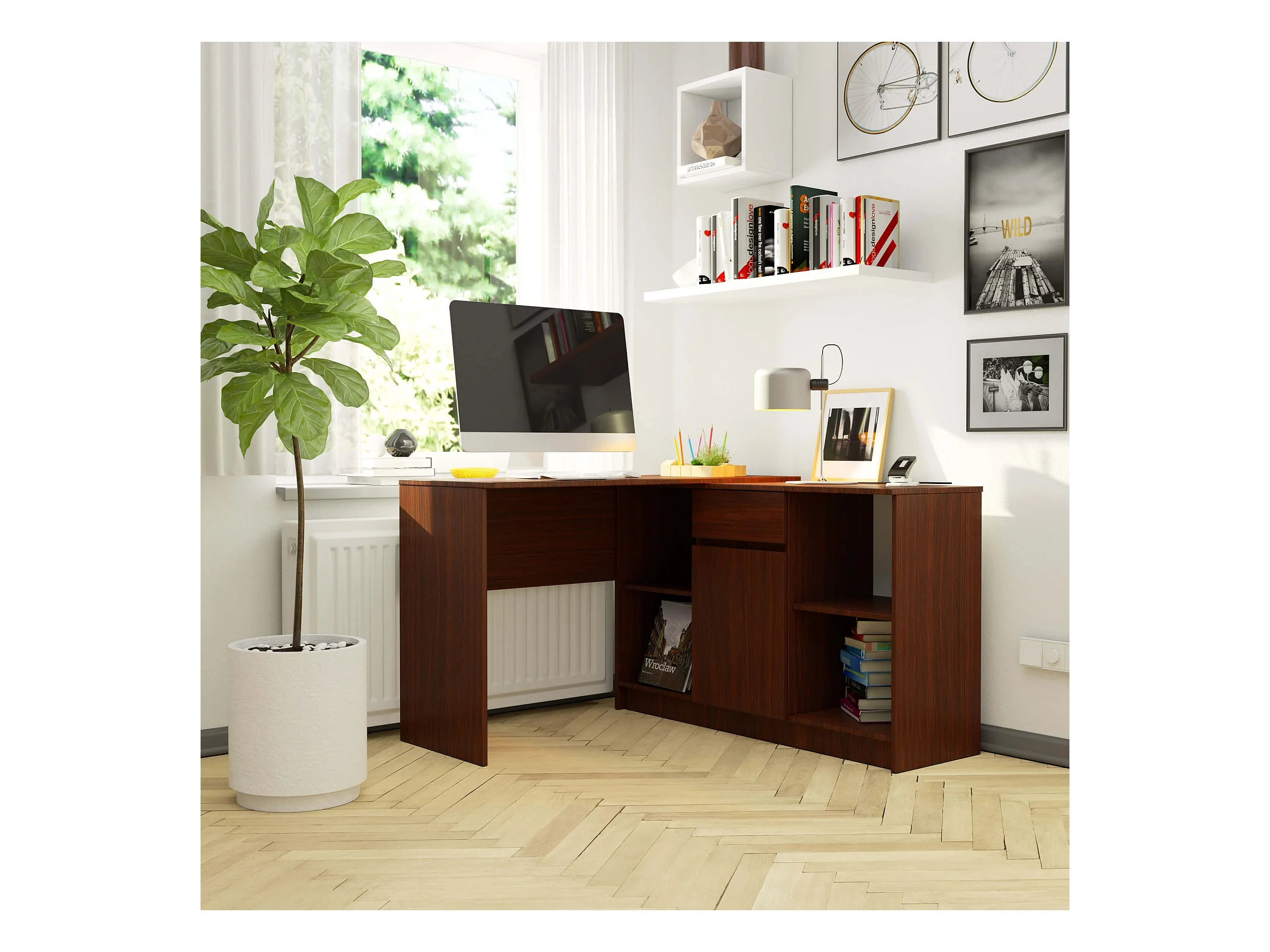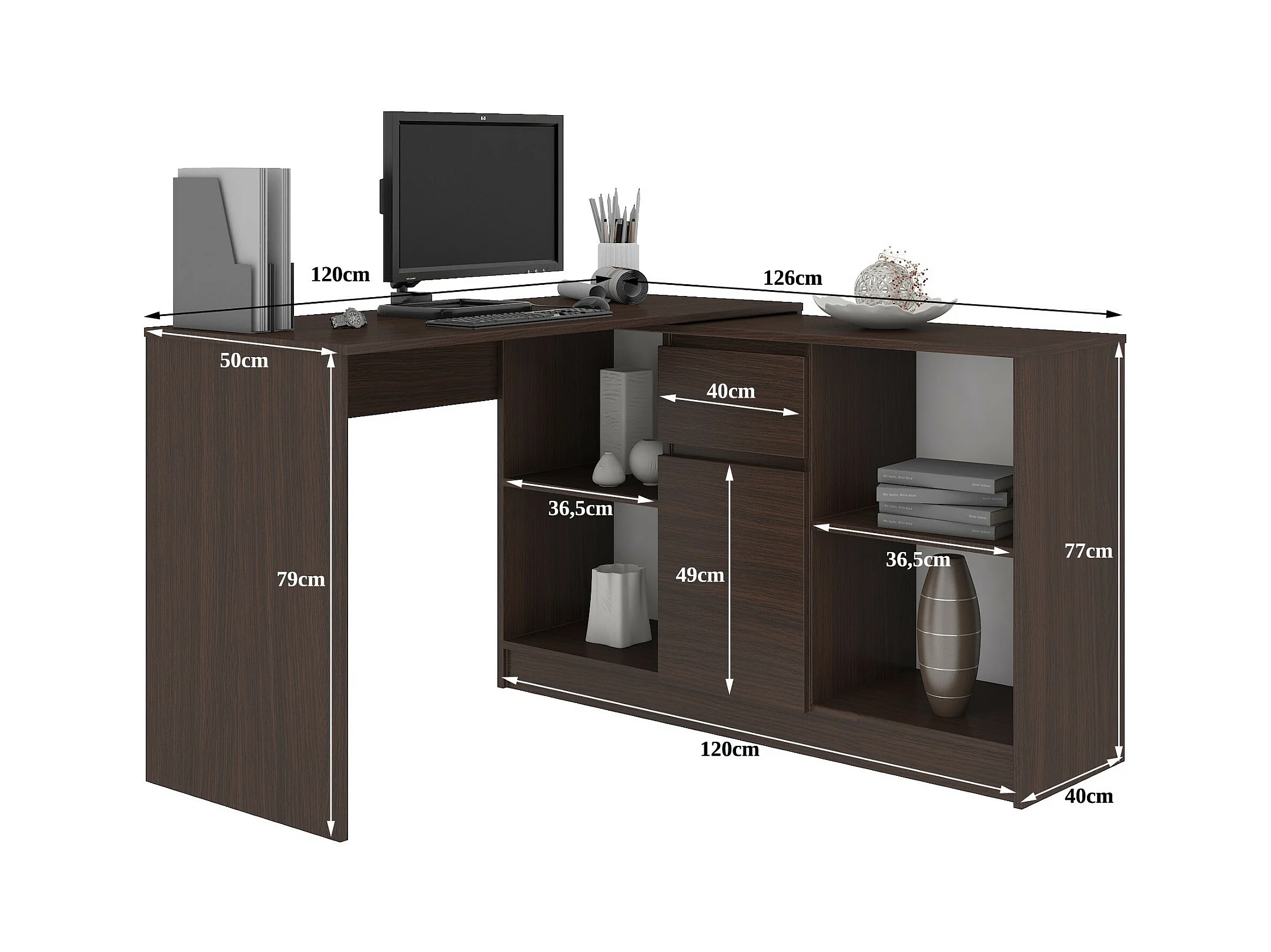 Ensemble d'angle AKORD bureau B17 avec commode Wengé 120 cm 1 porte 1 tiroir façade Wengé 6 étagères 120x126x79 cm