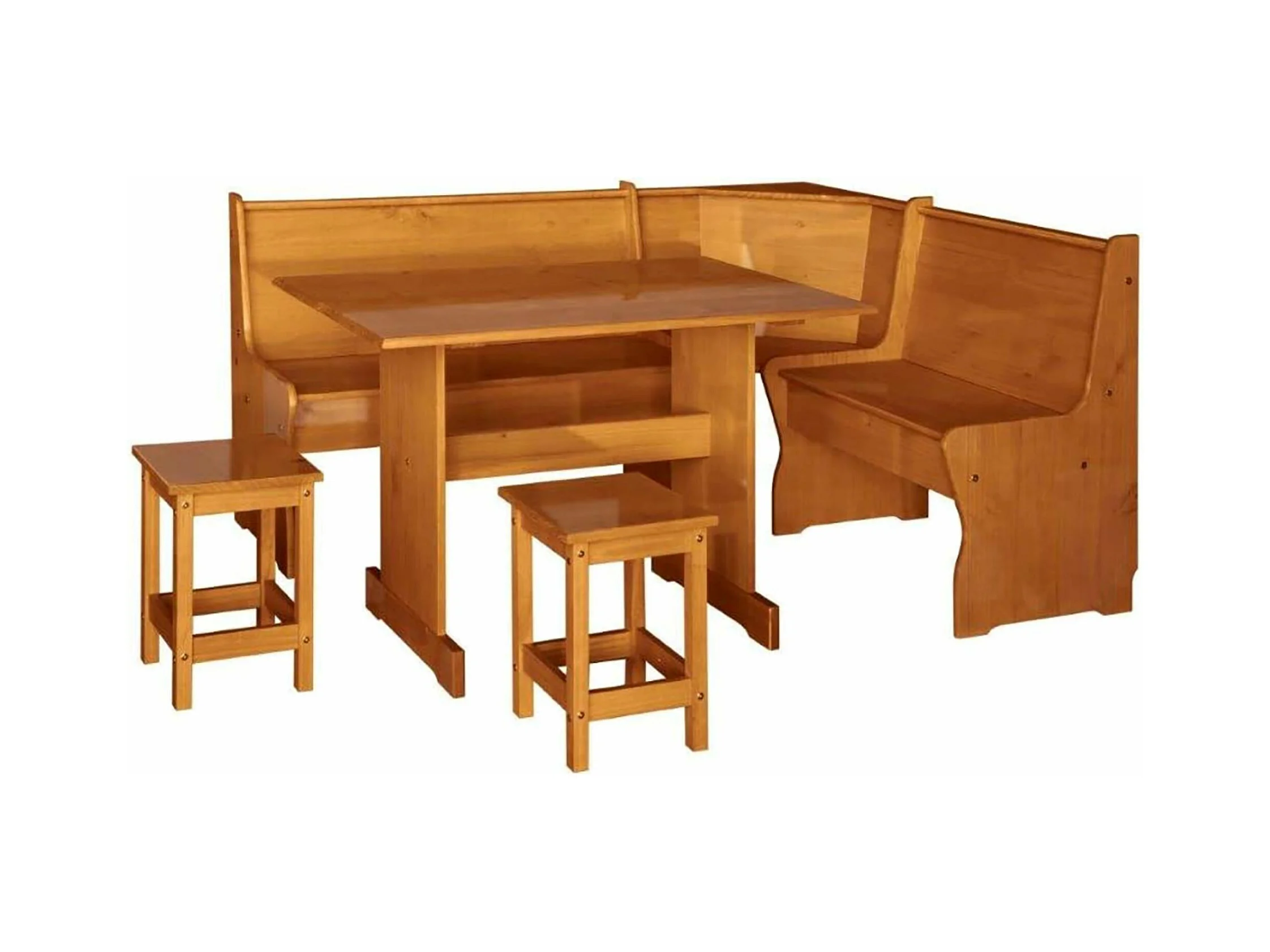 Ensemble d'angle coin repas en pin massif coloris miel - L. 172 x P. 132 x H. 86 cm