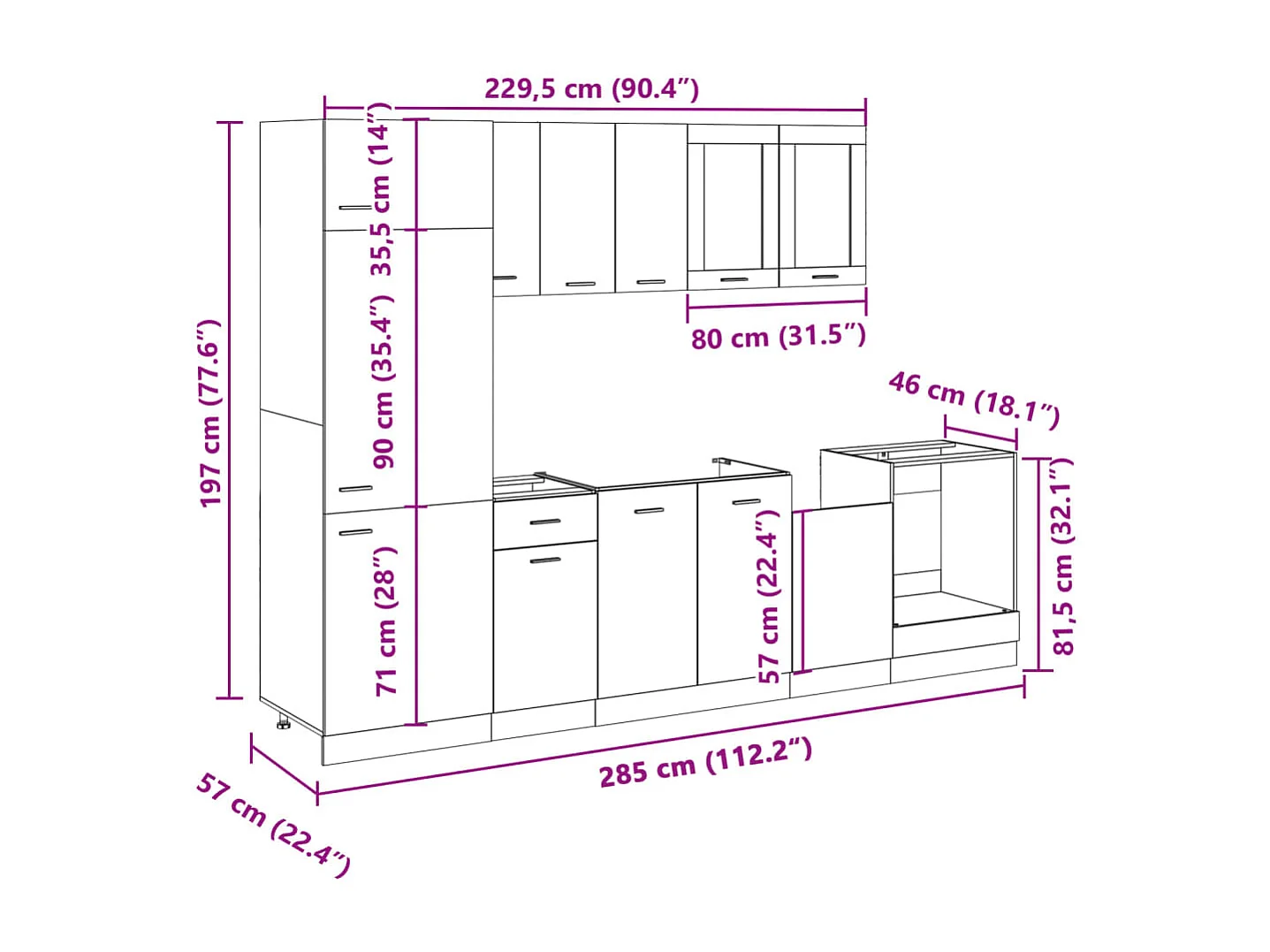 Ensemble de 8 meubles de cuisine "Lyon" en chêne Sonoma