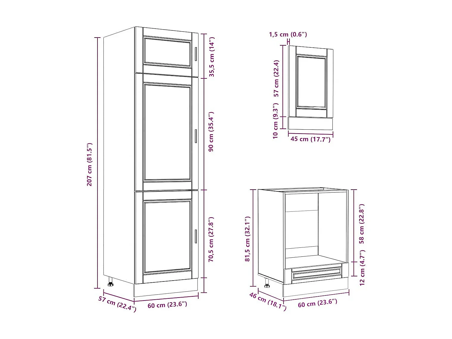 Ensemble de 7 meubles de cuisine "Porto" en bois d'ingénierie blanc brillant