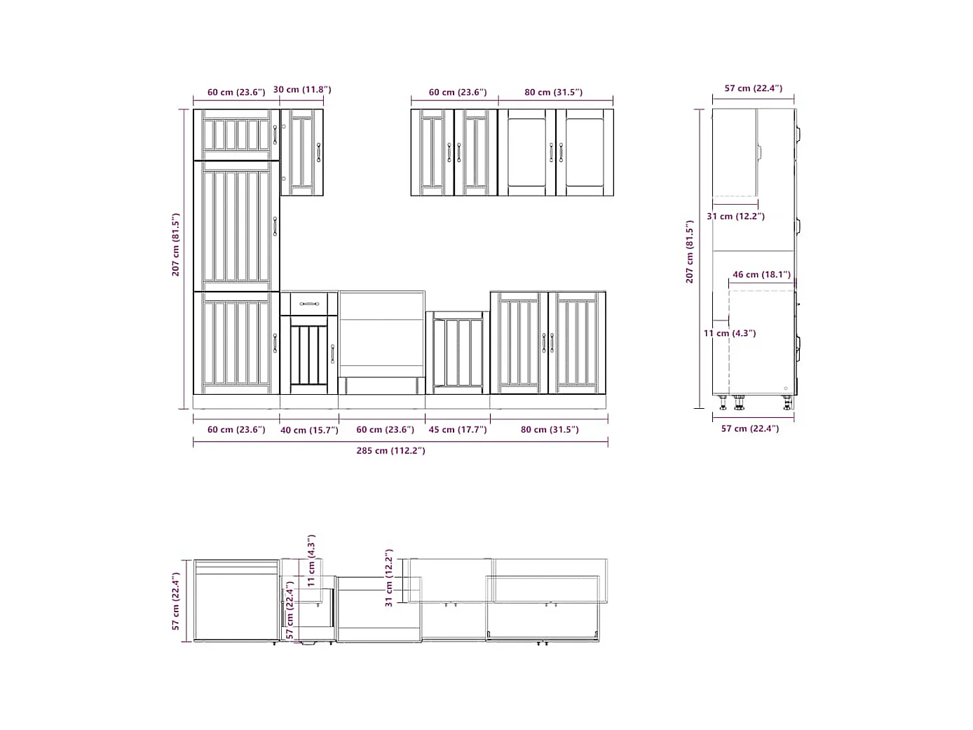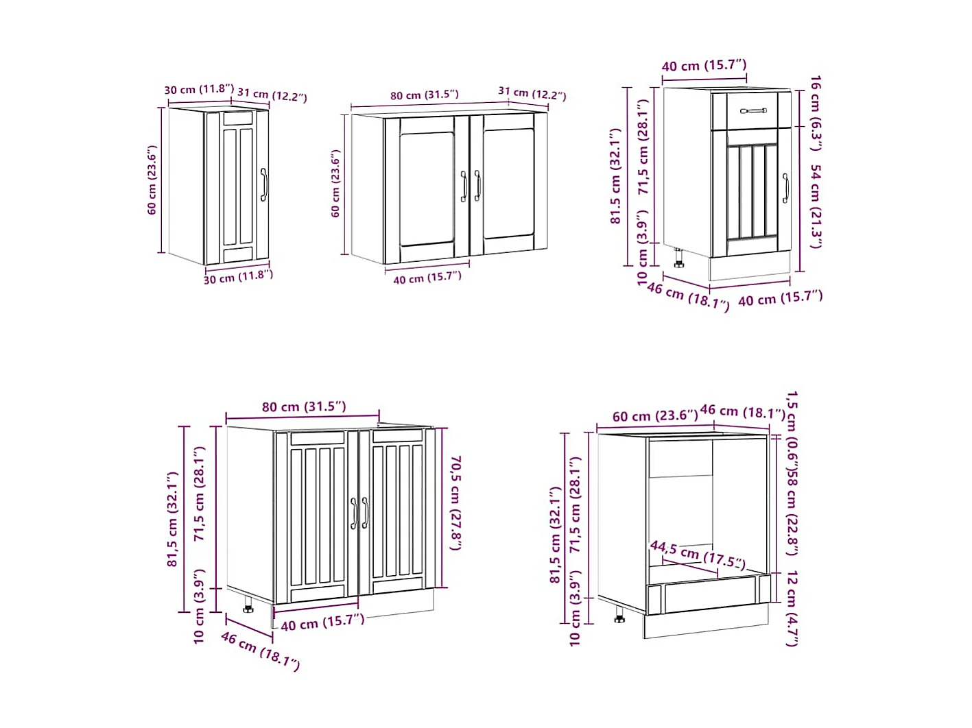 Ensemble de 8 meubles de cuisine "Lucca" en chêne Sonoma