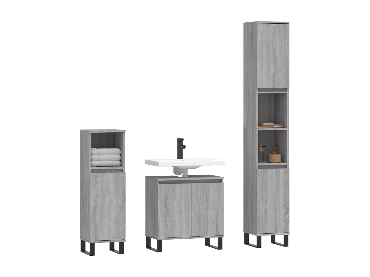 Ensemble d'armoires de salle de bain 3 pcs sonoma gris