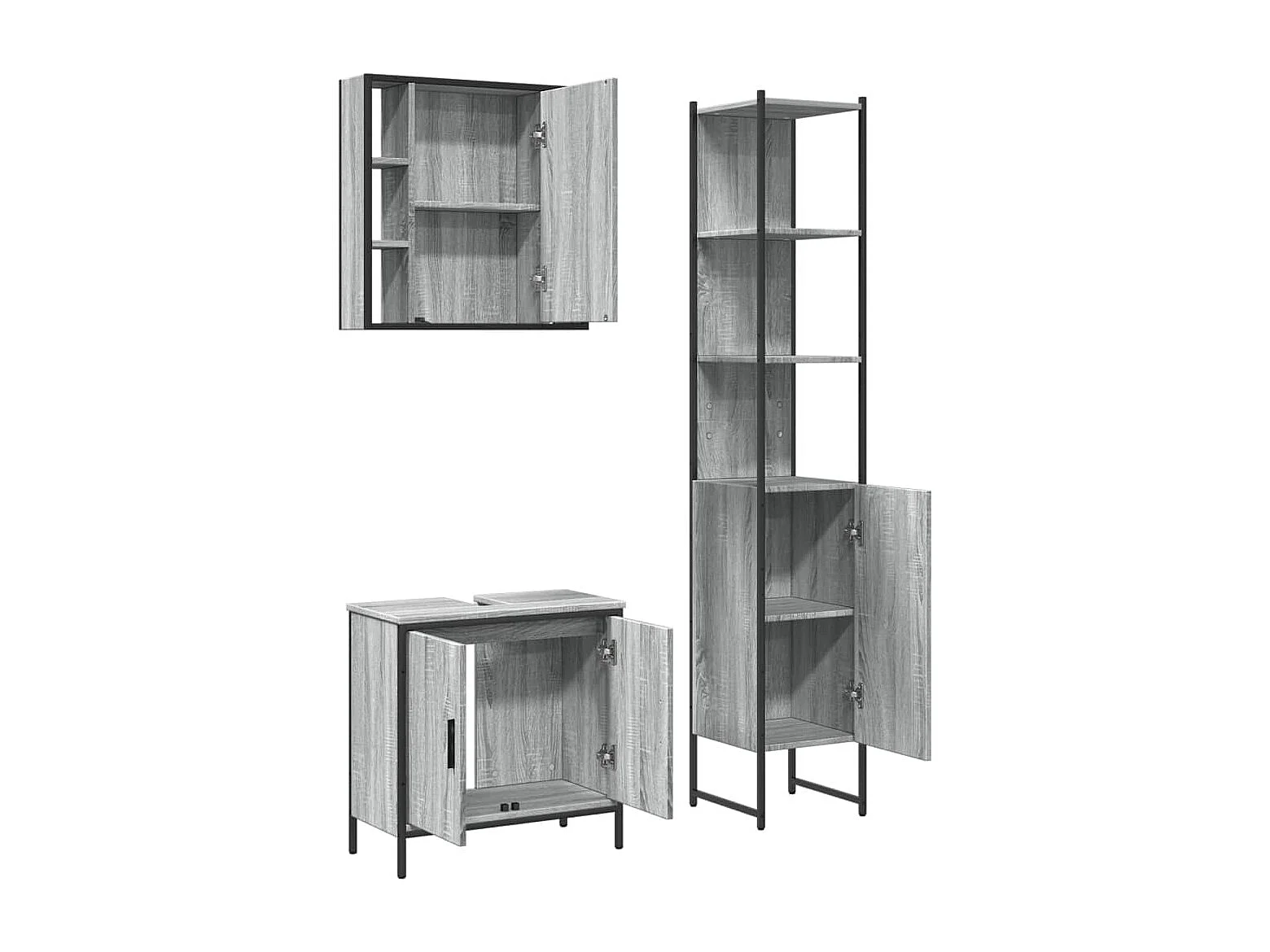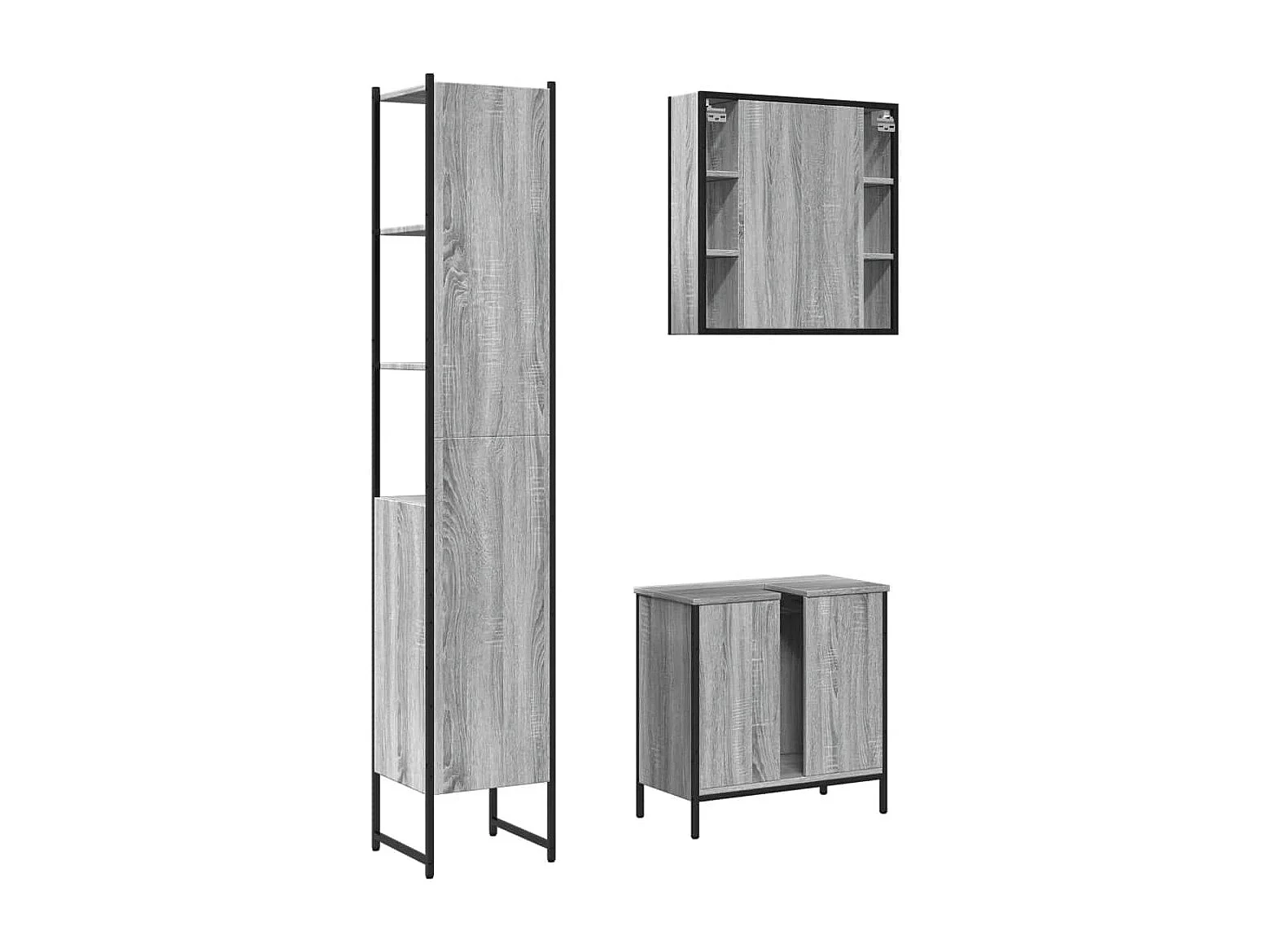 Ensemble d'armoires de salle de bain 3 pcs sonoma gris