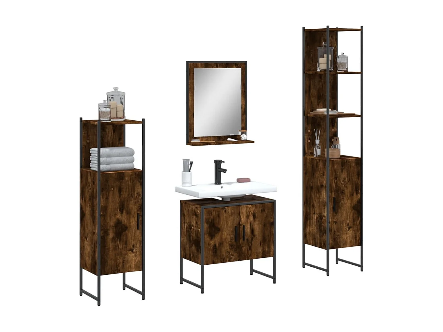 Ensemble d'armoires de salle de bain 4 pcs chêne fumé