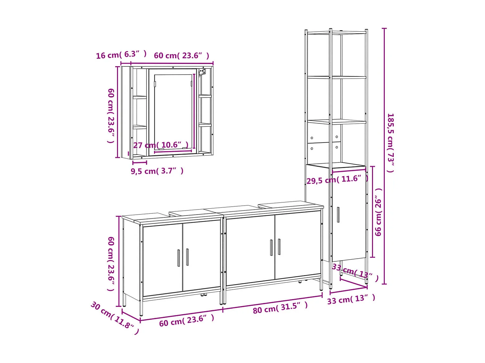 Ensemble d'armoires de salle de bain 4 pcs chêne marron
