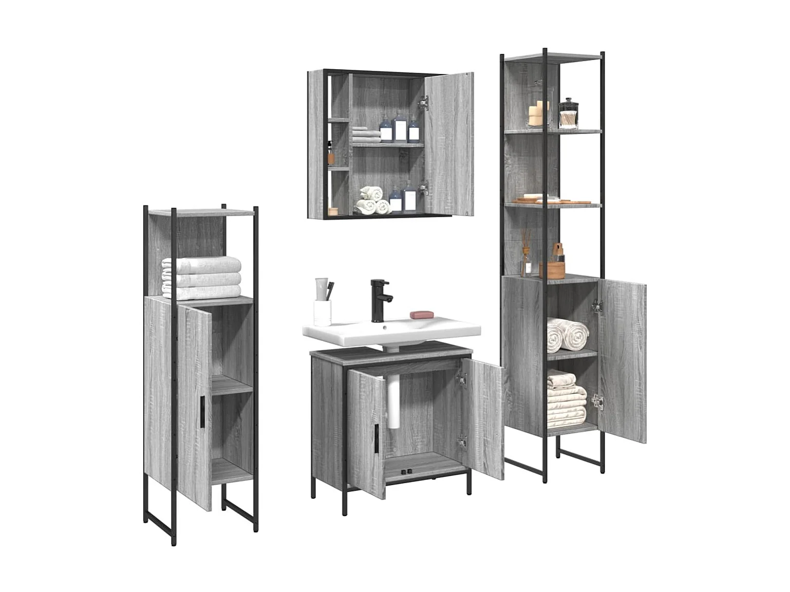Ensemble d'armoires de salle de bain 4 pcs sonoma gris