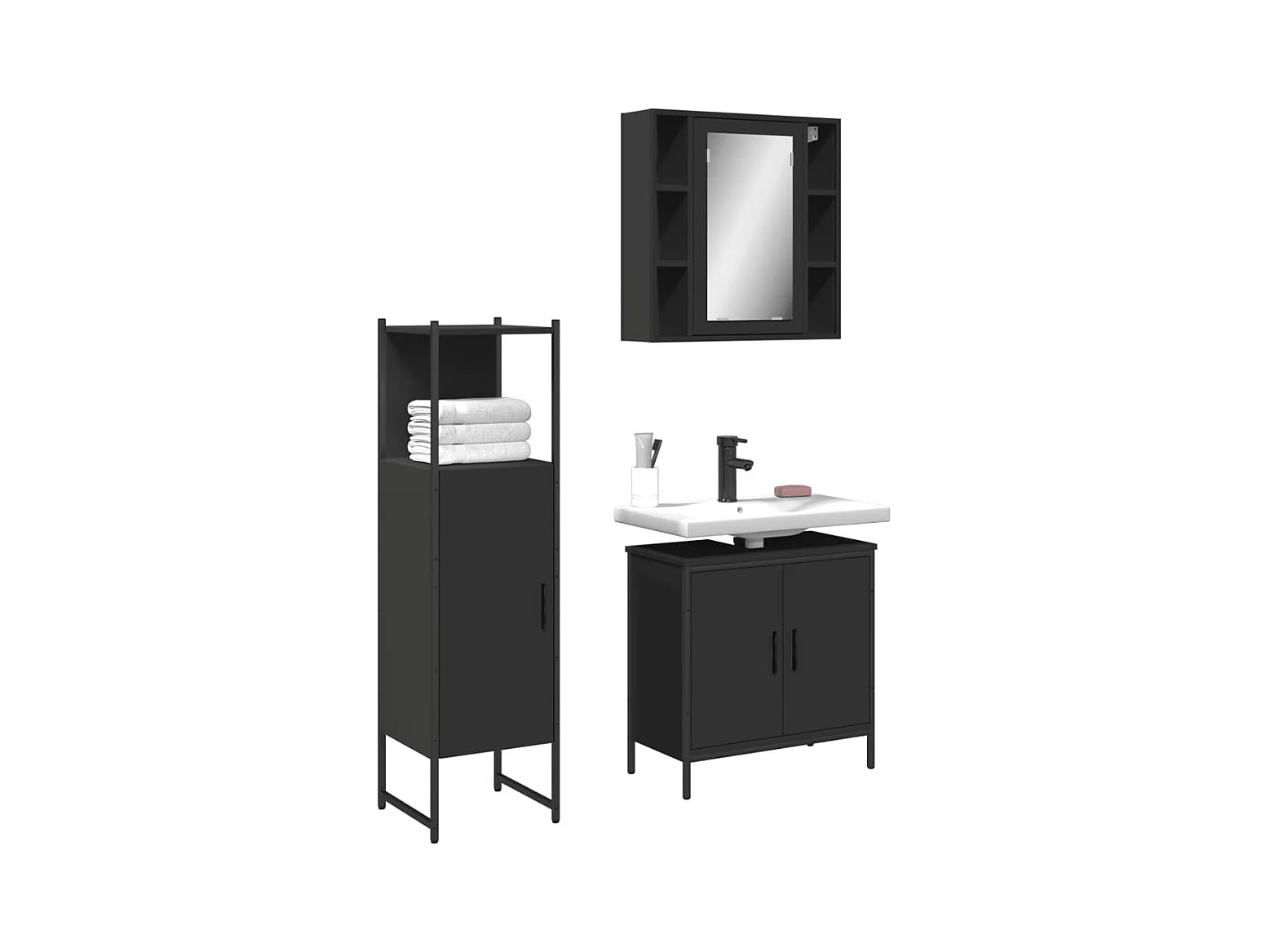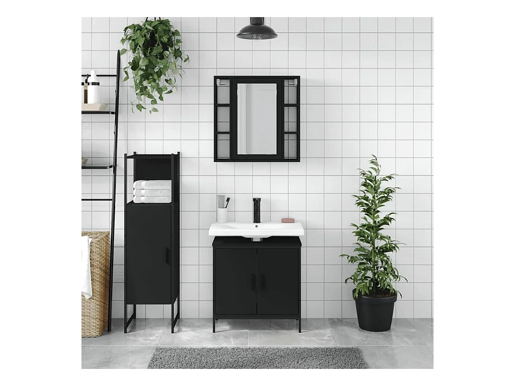 Ensemble d'armoires salle de bain 3 pcs noir bois d'ingénierie