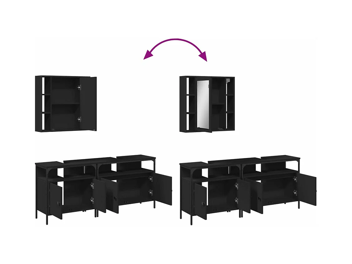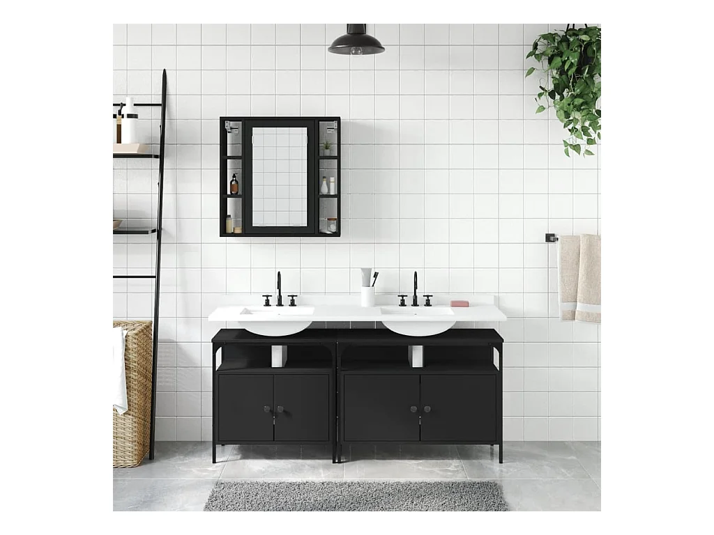 Ensemble d'armoires salle de bain 3 pcs noir bois d'ingénierie