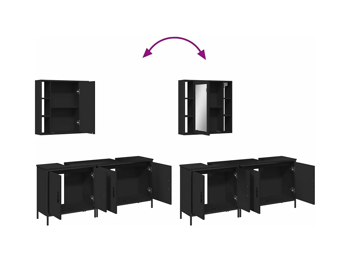 Ensemble d'armoires salle de bain 3 pcs noir bois d'ingénierie