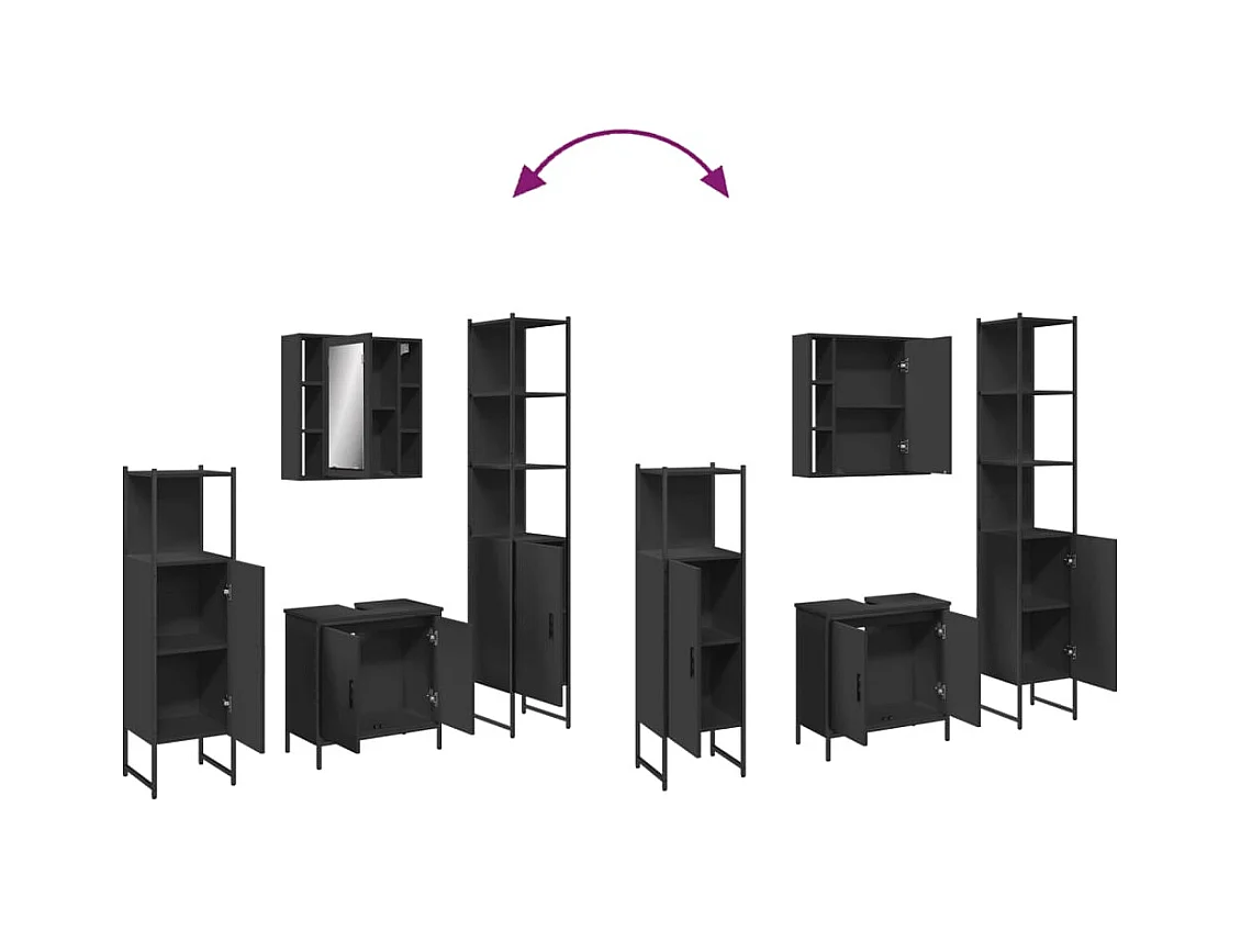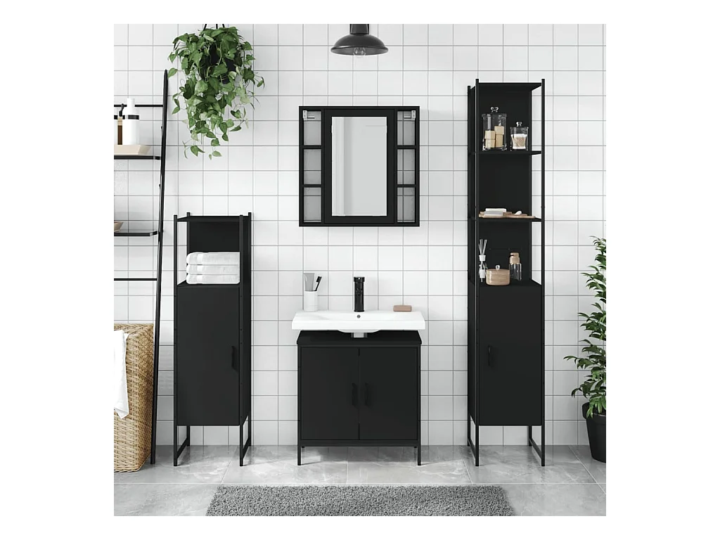 Ensemble d’armoires salle de bain 4 pcs noir bois d'ingénierie