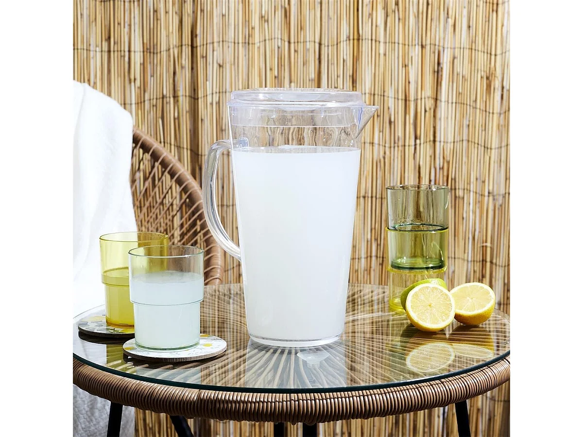 Ensemble de 1 pichet et 4 verres assortis en plastique coloré (vert, jaune, transparent)
