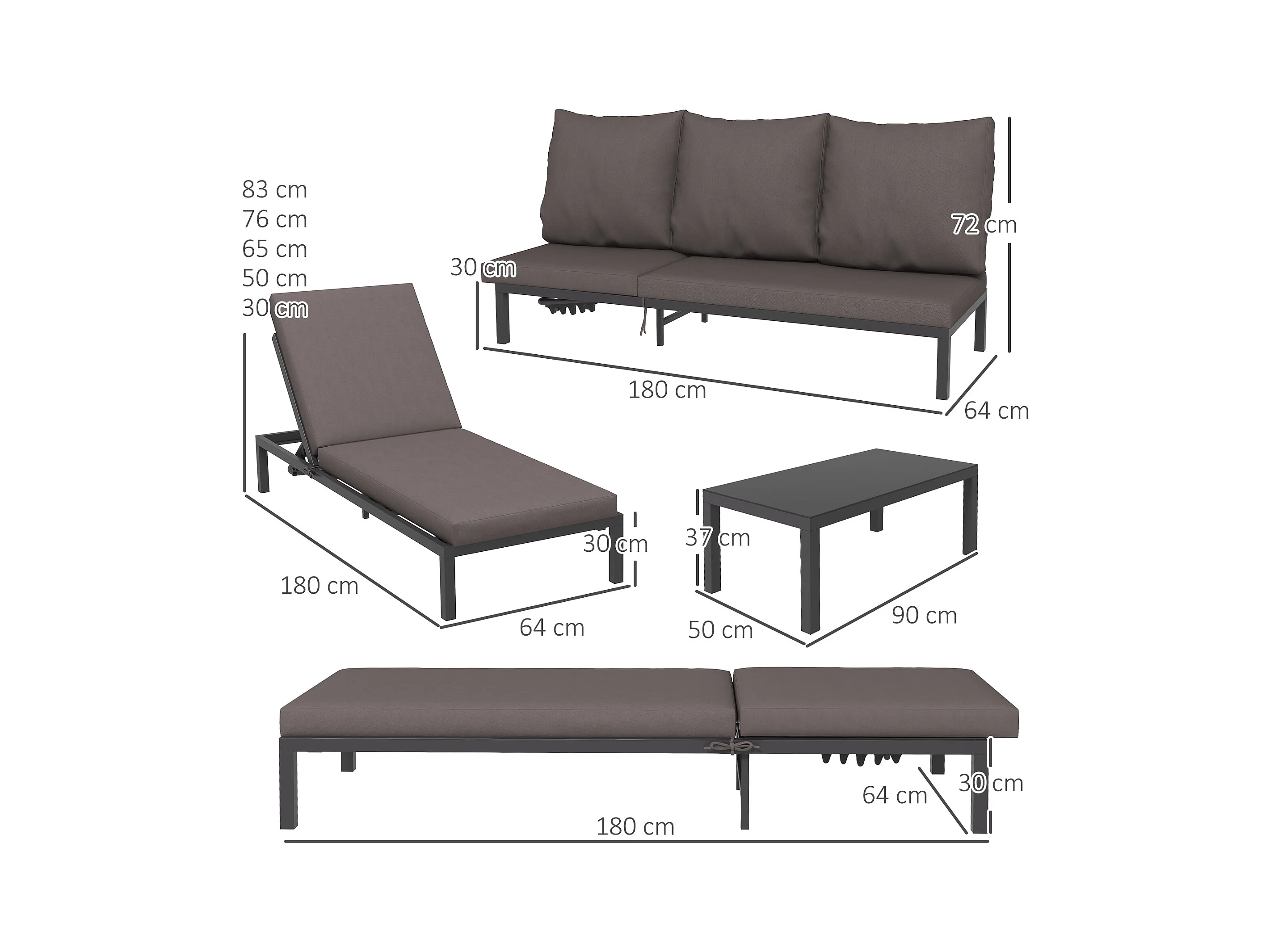Ensemble de 2 bains de soleil inclinables avec matelas déhoussables
