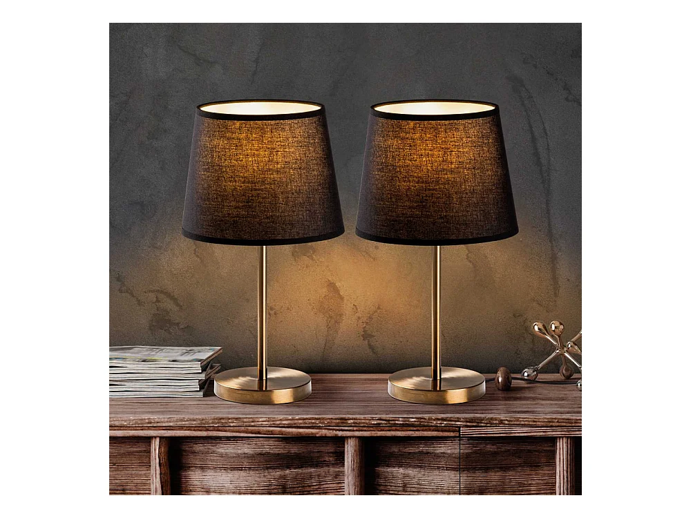Lampe de table pied ronde bosse bibliophiles à abat-jour Replica 23x57cm Métal Noir et Tissu Or