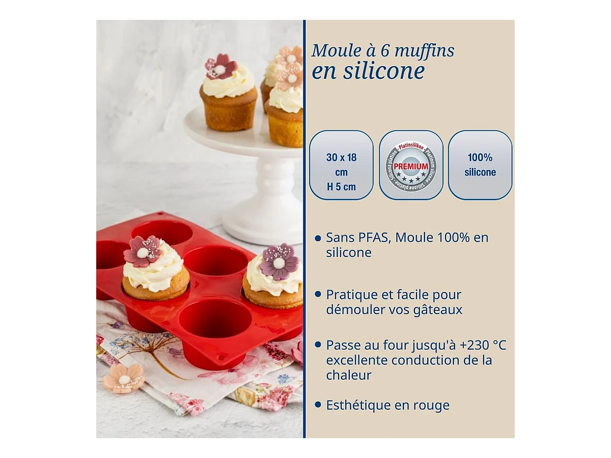 Ensemble de 2 moules à muffins 6 empreintes 30 x 18 cm Dr.Oetker Flexxibel Love
