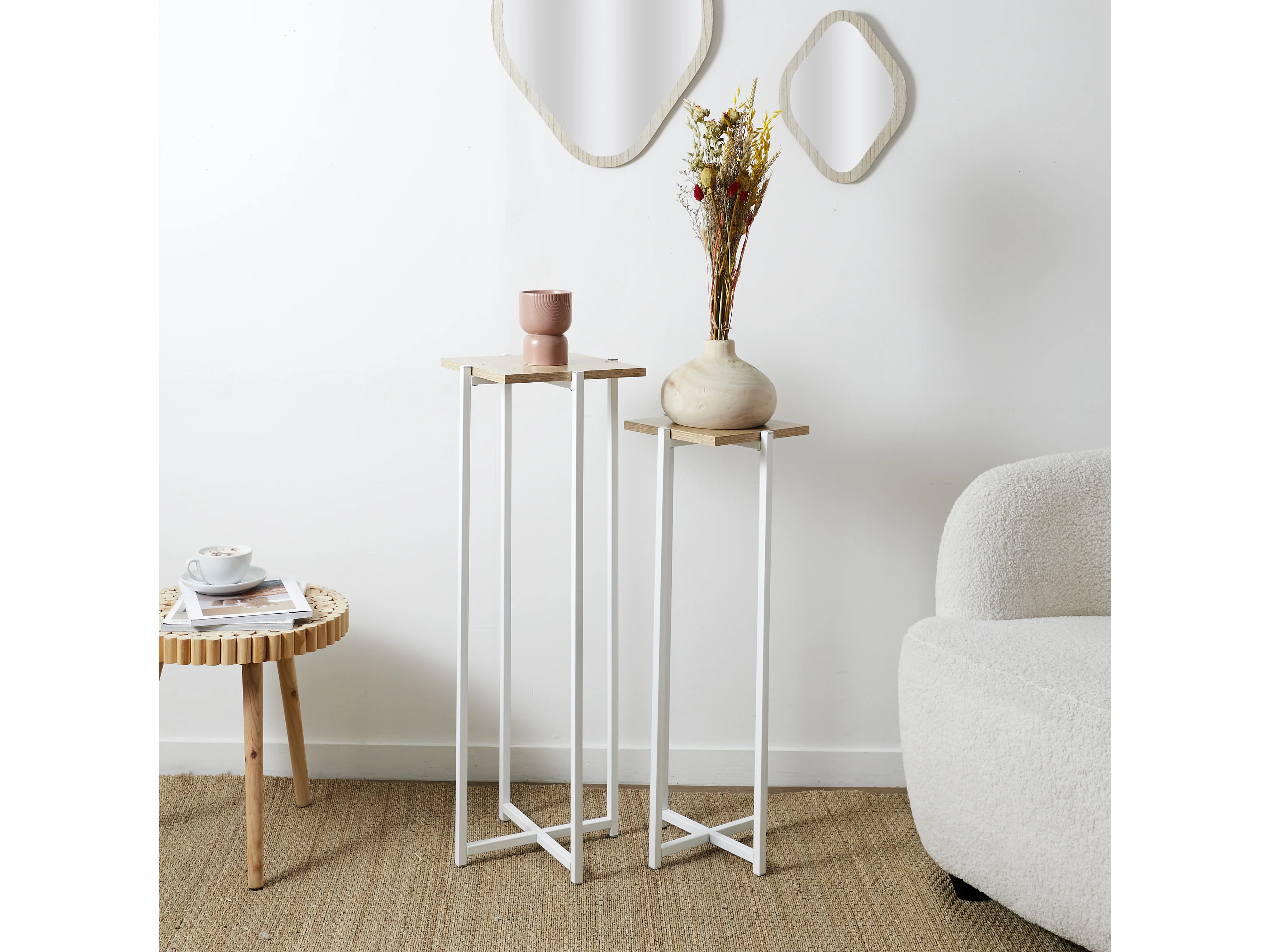 Table basse 0,3x0,3x0,6 m blanche tensio 2 étages métal 30