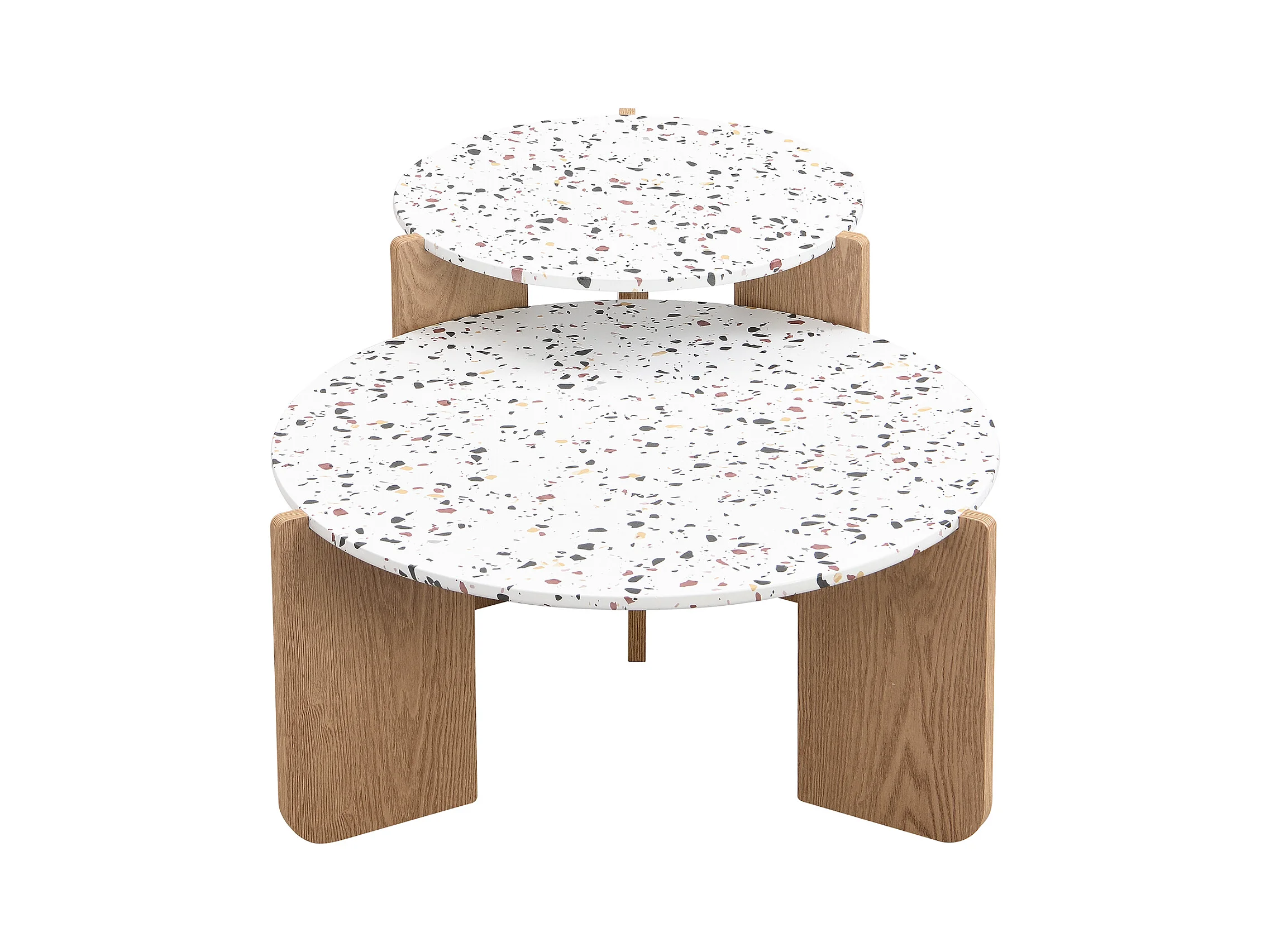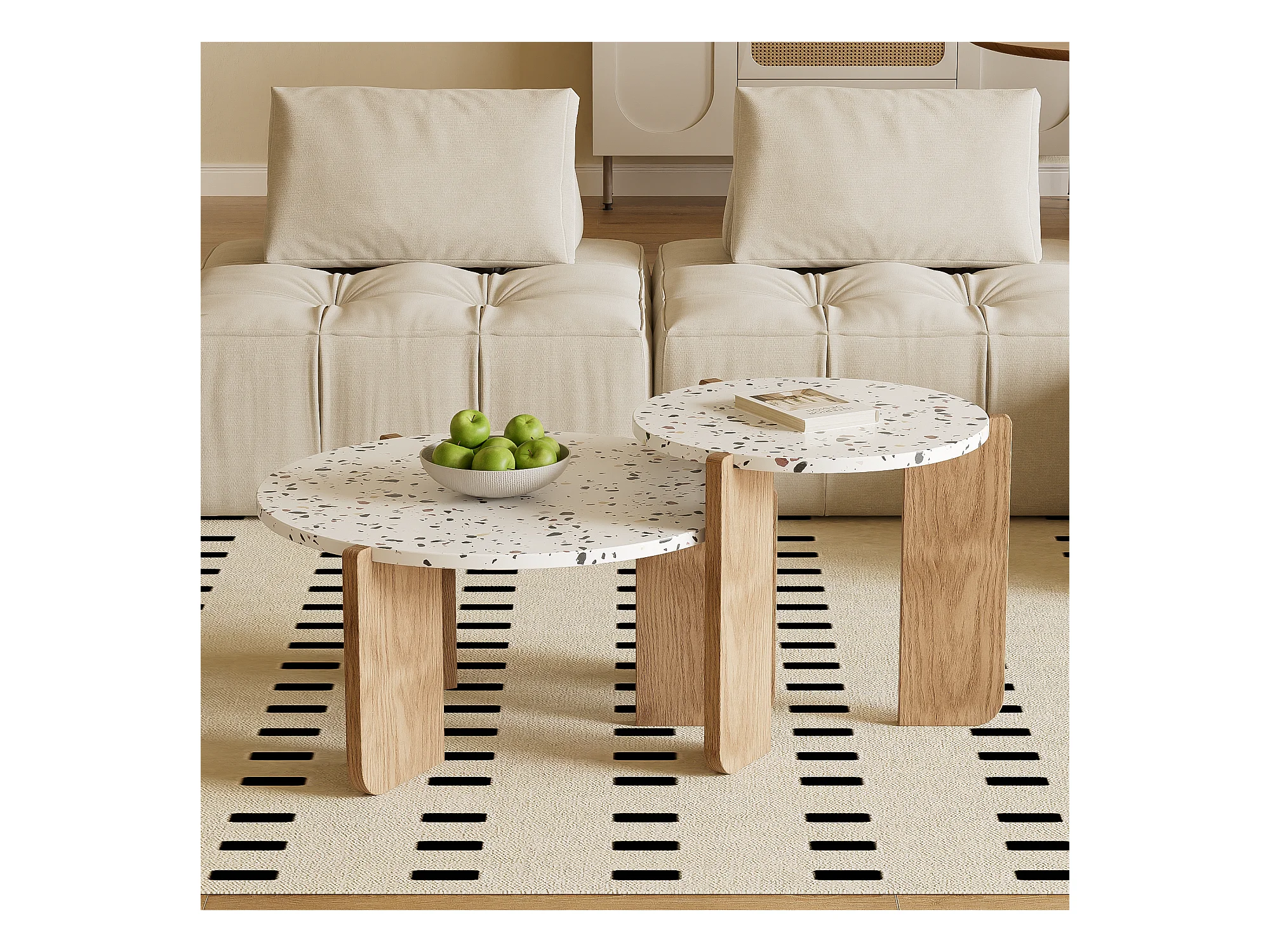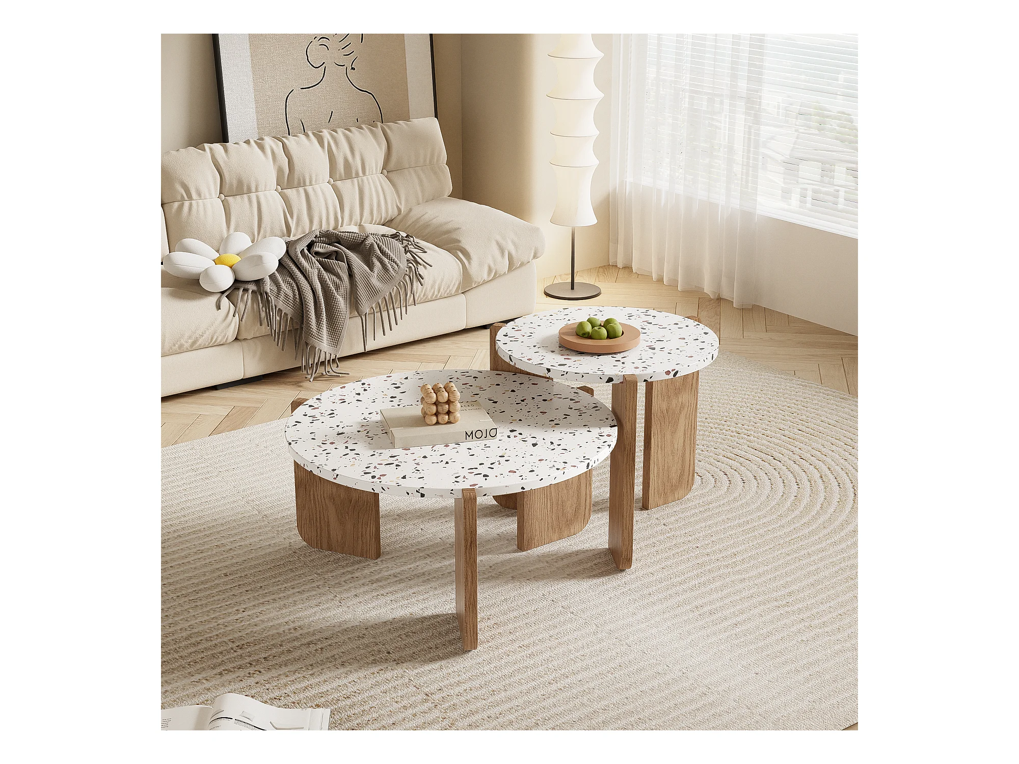 Lot de 2 tables basses rondes gigognes en chêne pour salon