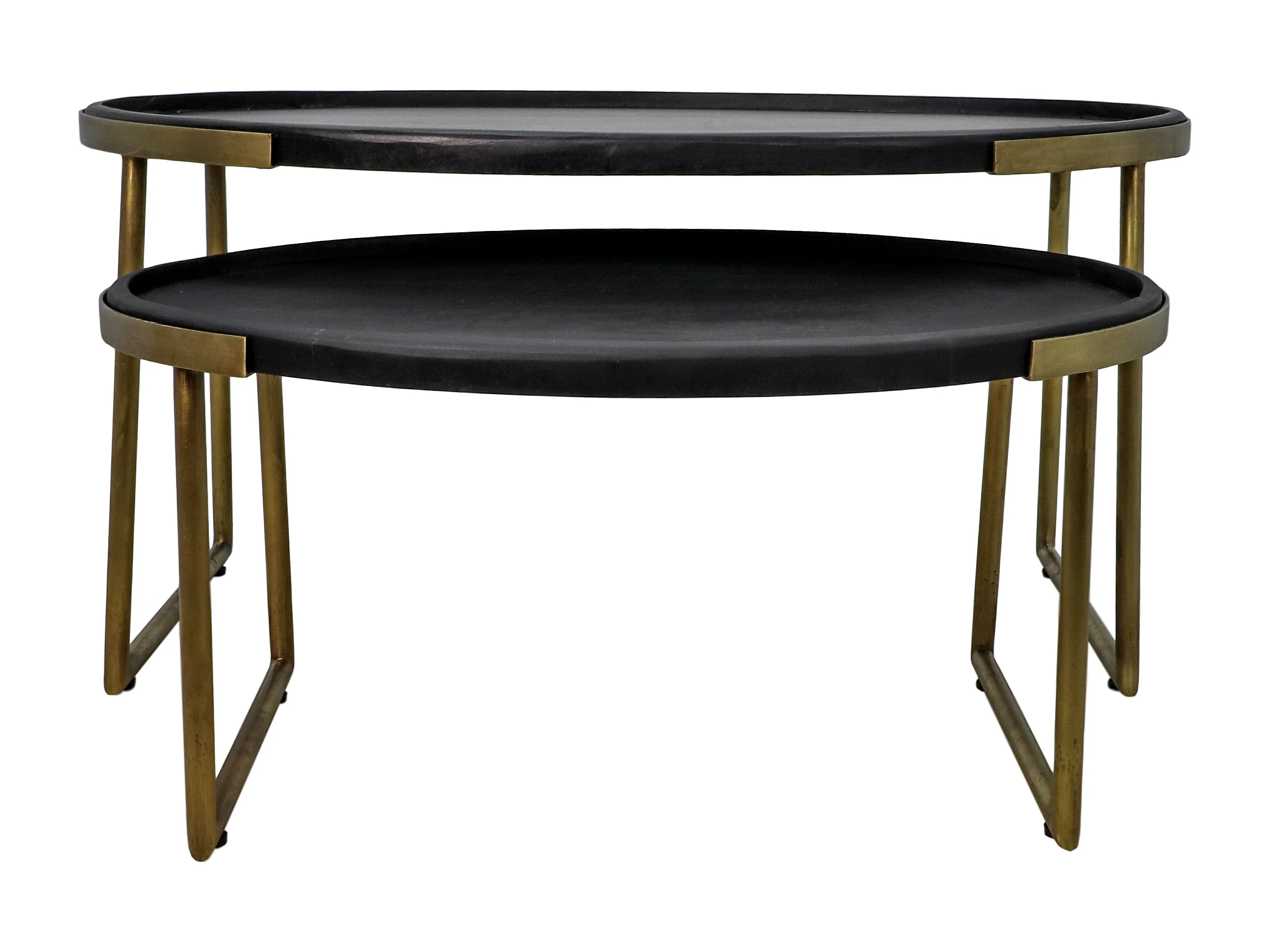 Ensemble de 2 tables basses ovales Paulson - Antique or 90*60*45+70*50*35