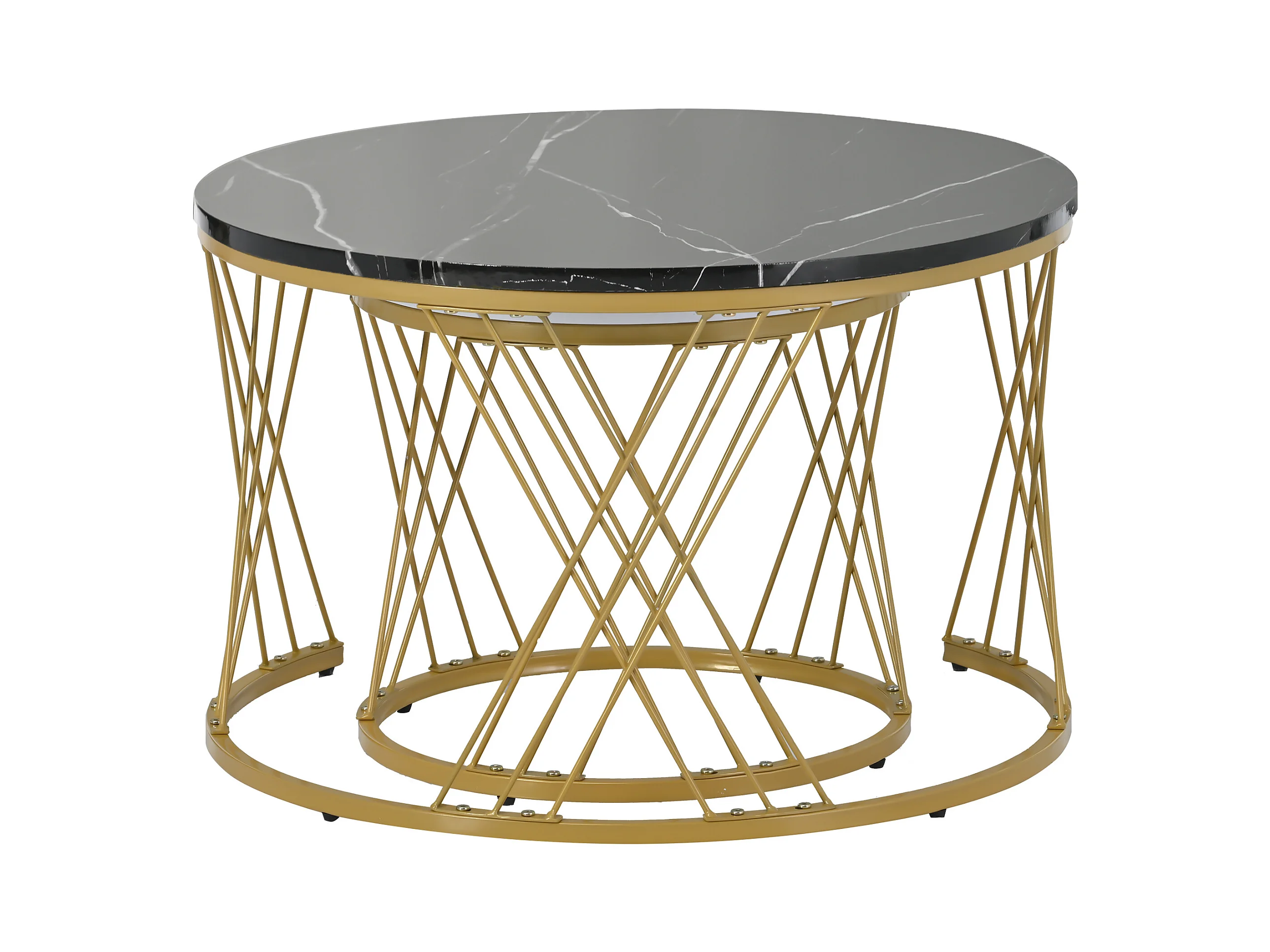 Table Basse Nesting Moderne avec Motif Marbre, Ensemble de 2 Tables Rondes