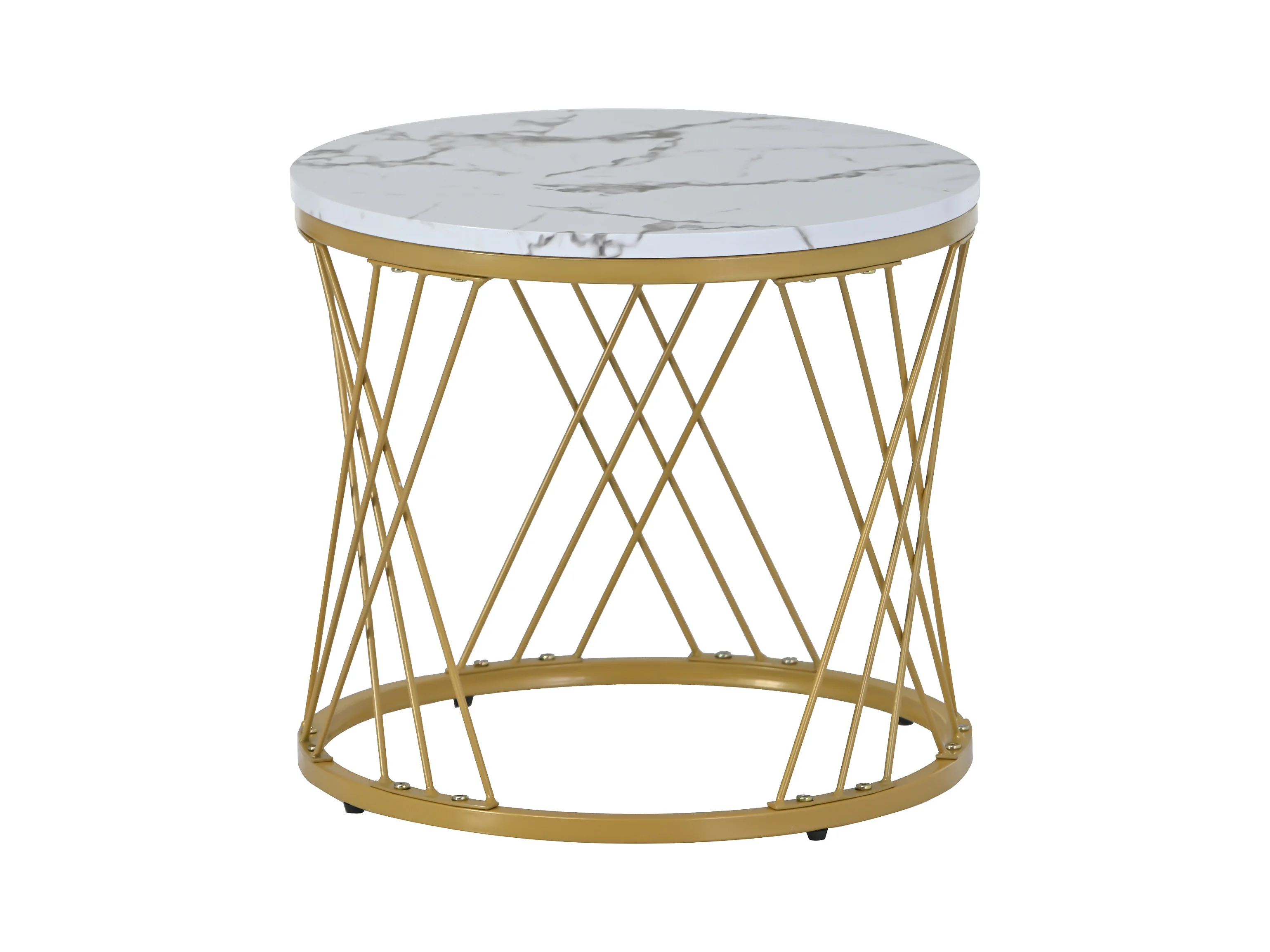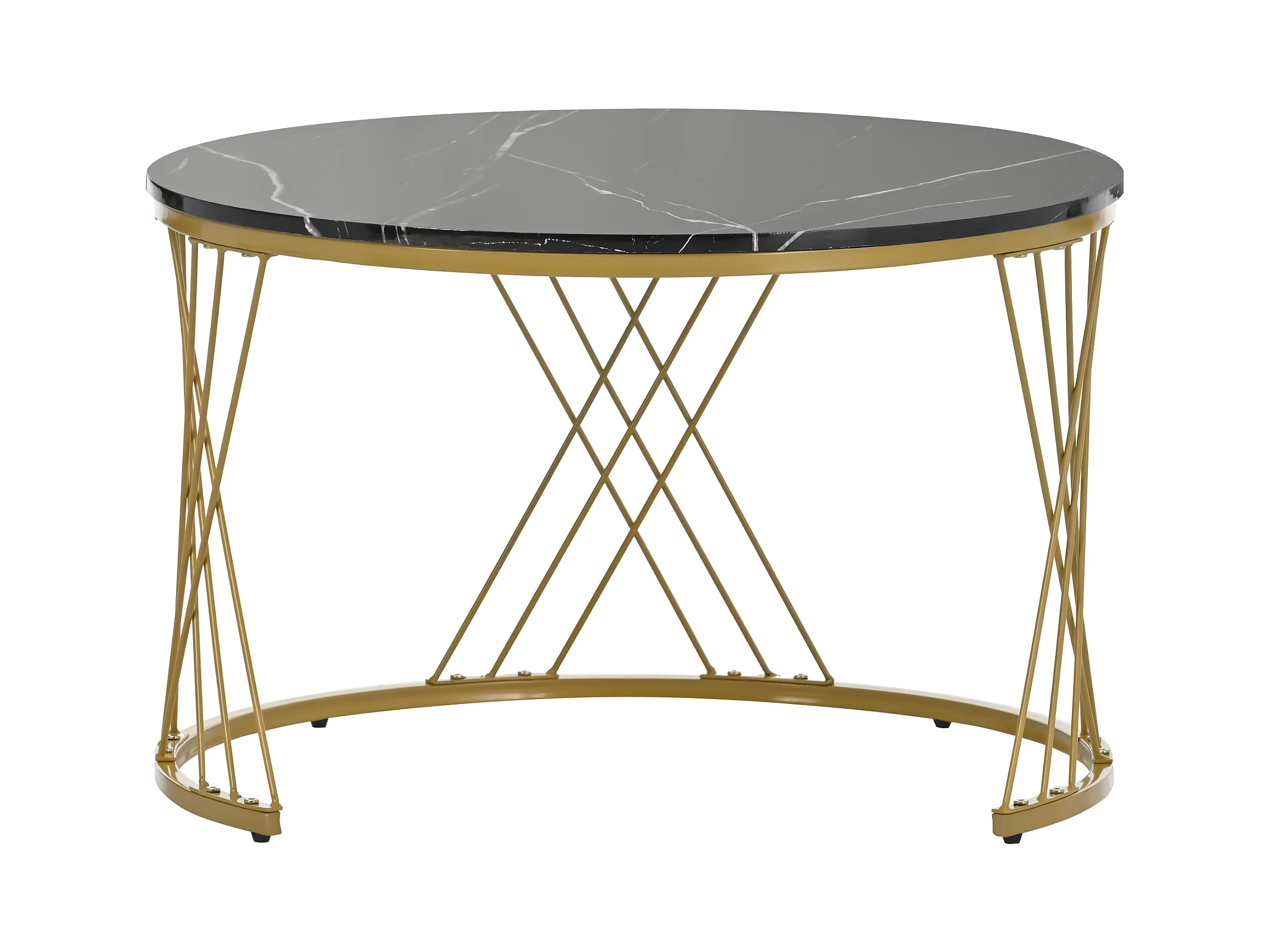 Table basse élégante 2 pièces, effet marbre, décor doré, avec tiroirs