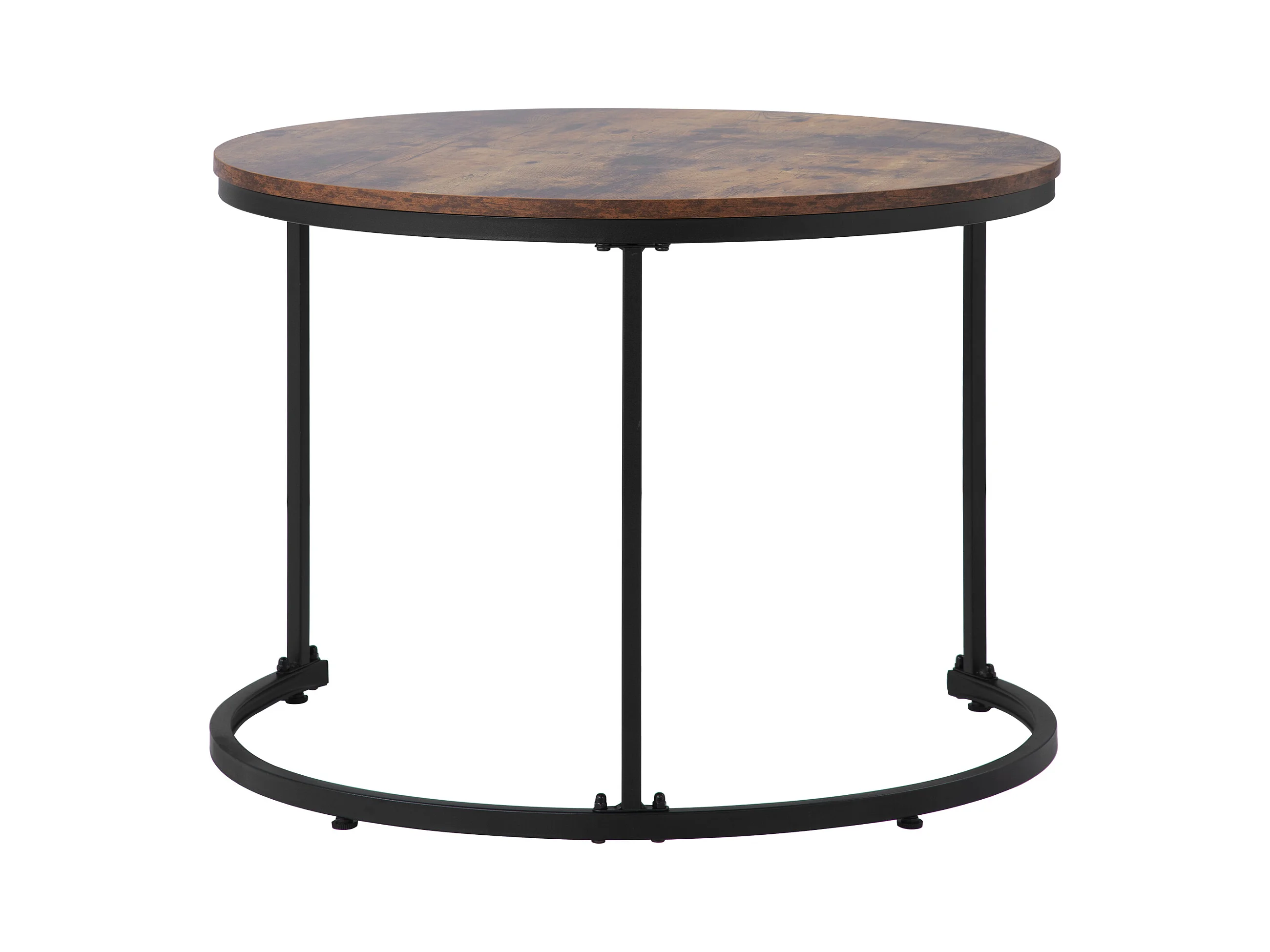 Lot de 2 tables basses gigognes rondes woodgrain marron, cadre en métal noir