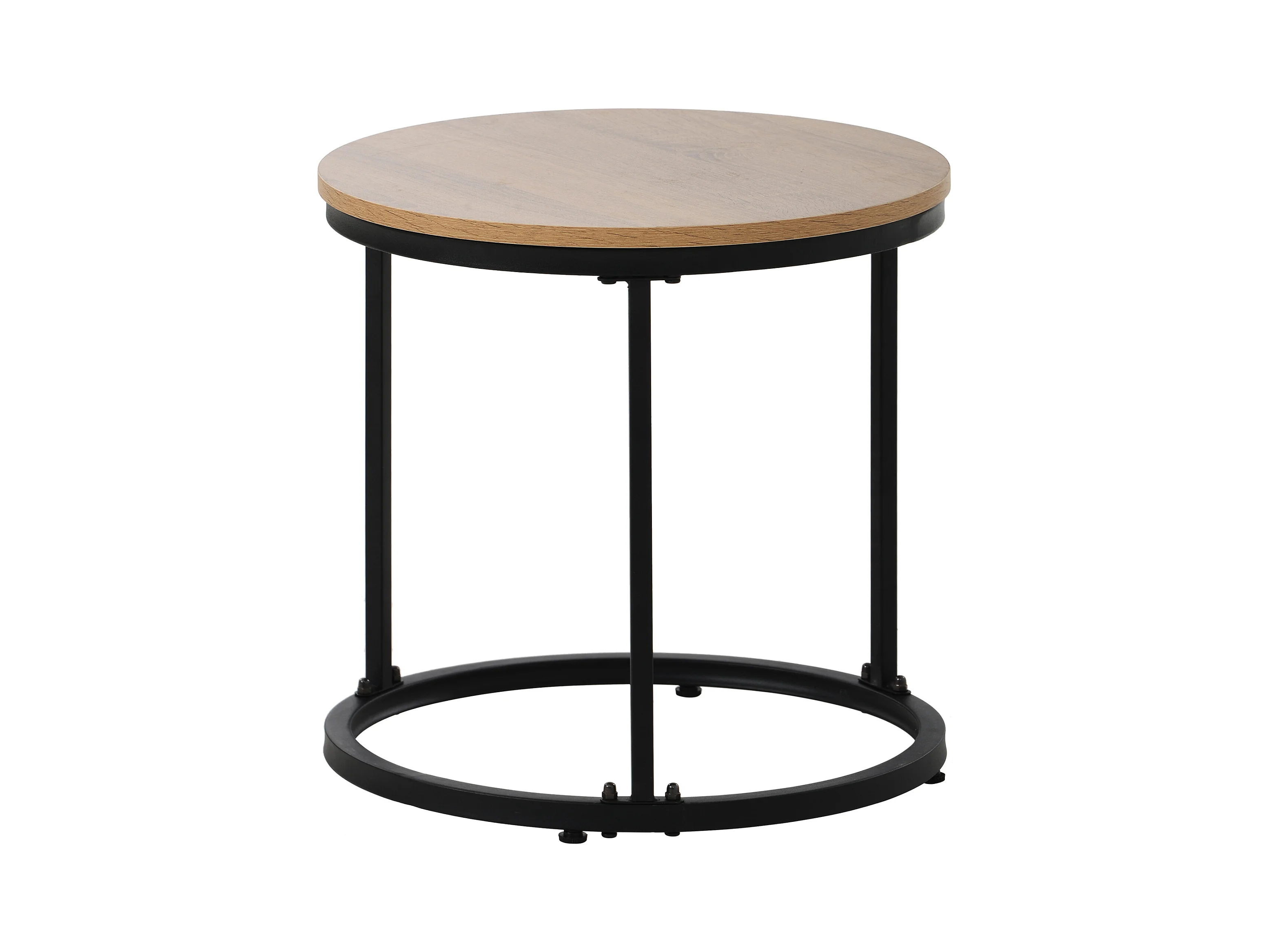 Lot de 2 tables basses gigognes rondes woodgrain naturel clair, cadre en métal noir