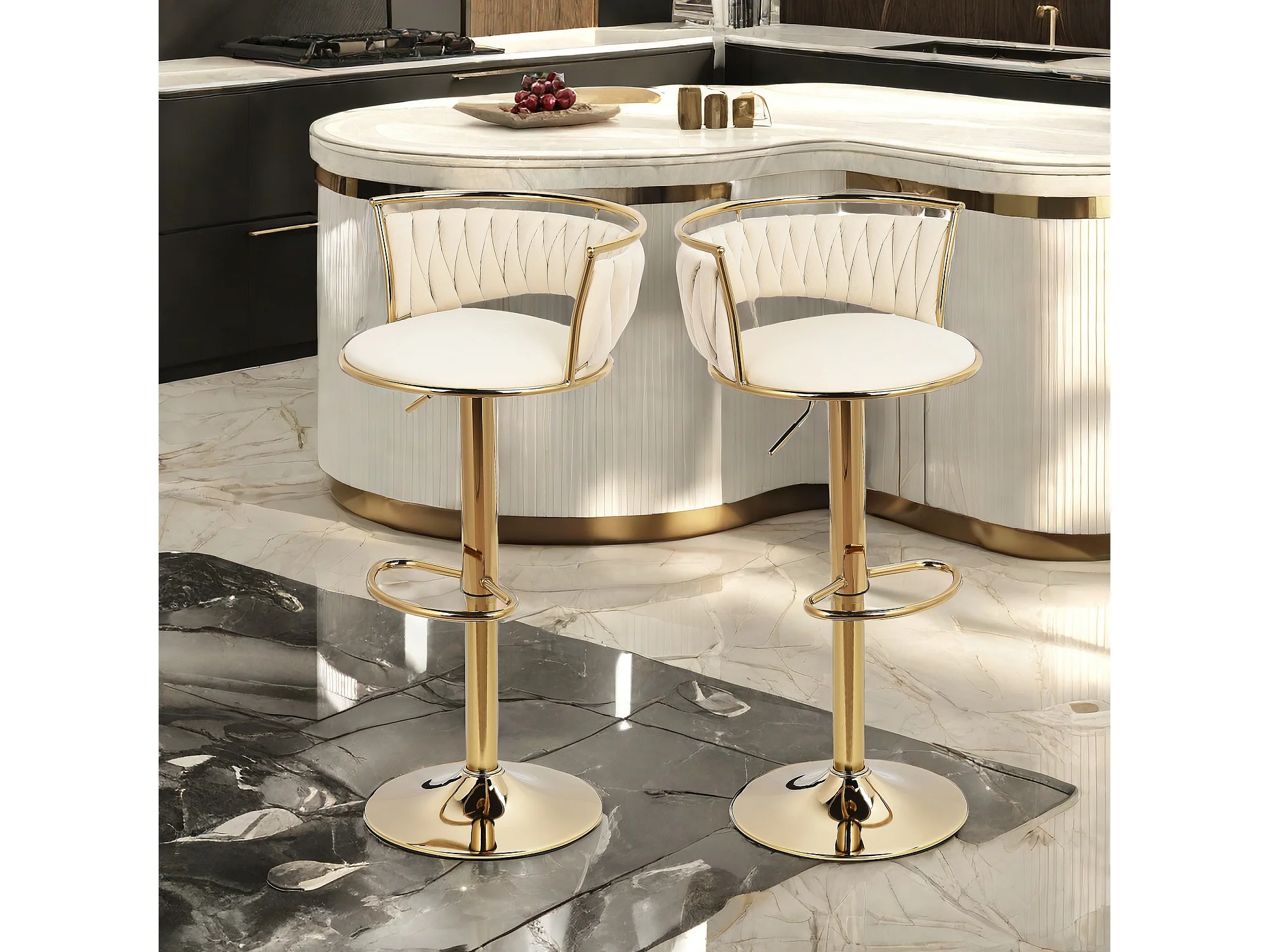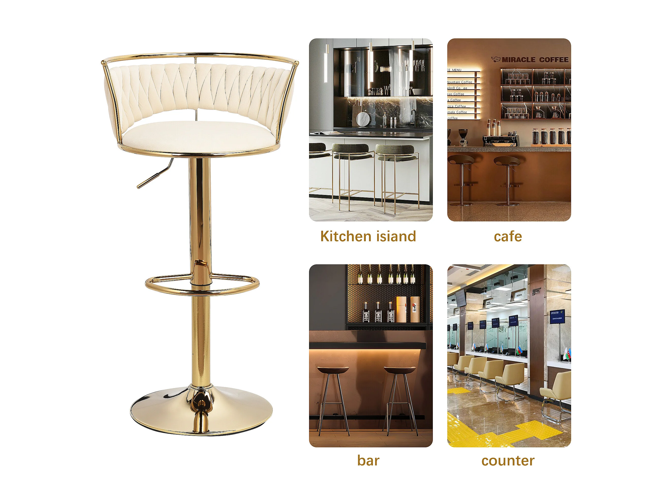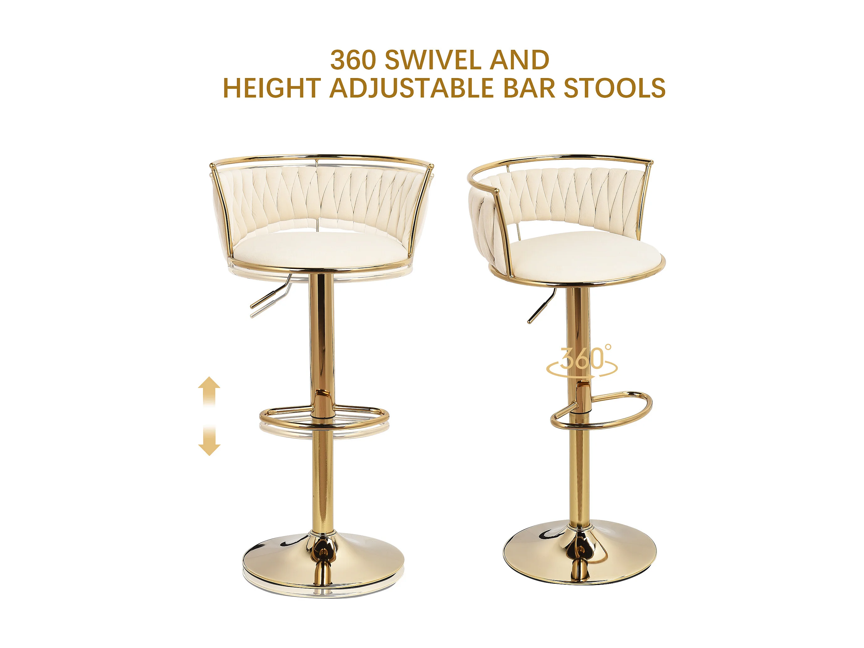 Ensemble de 2 tabourets de bar, chaise de salle à manger, hauteur réglable, base ronde, Beige, velours