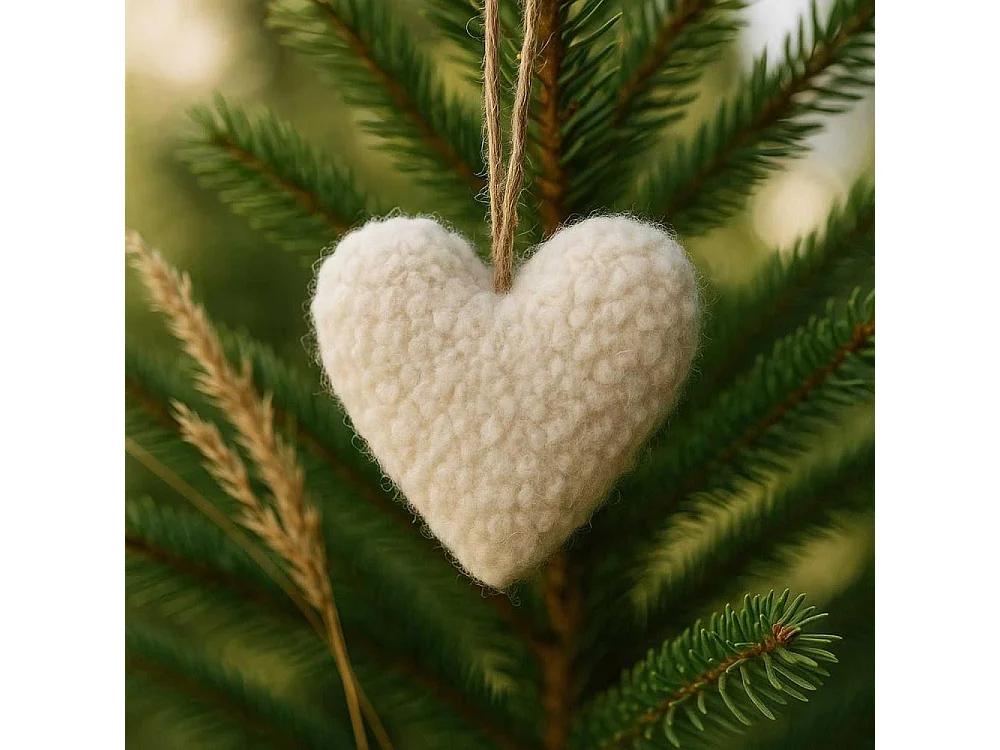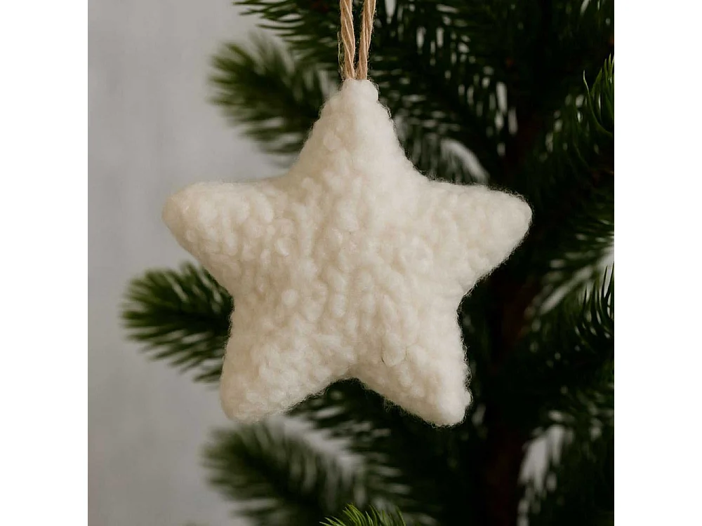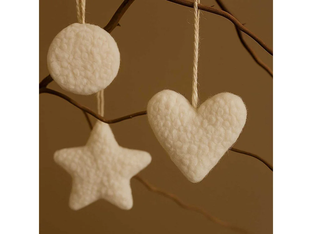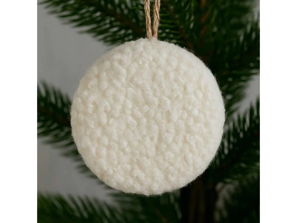 Sujet de Noël "Couronne Pompons" 14cm Blanc