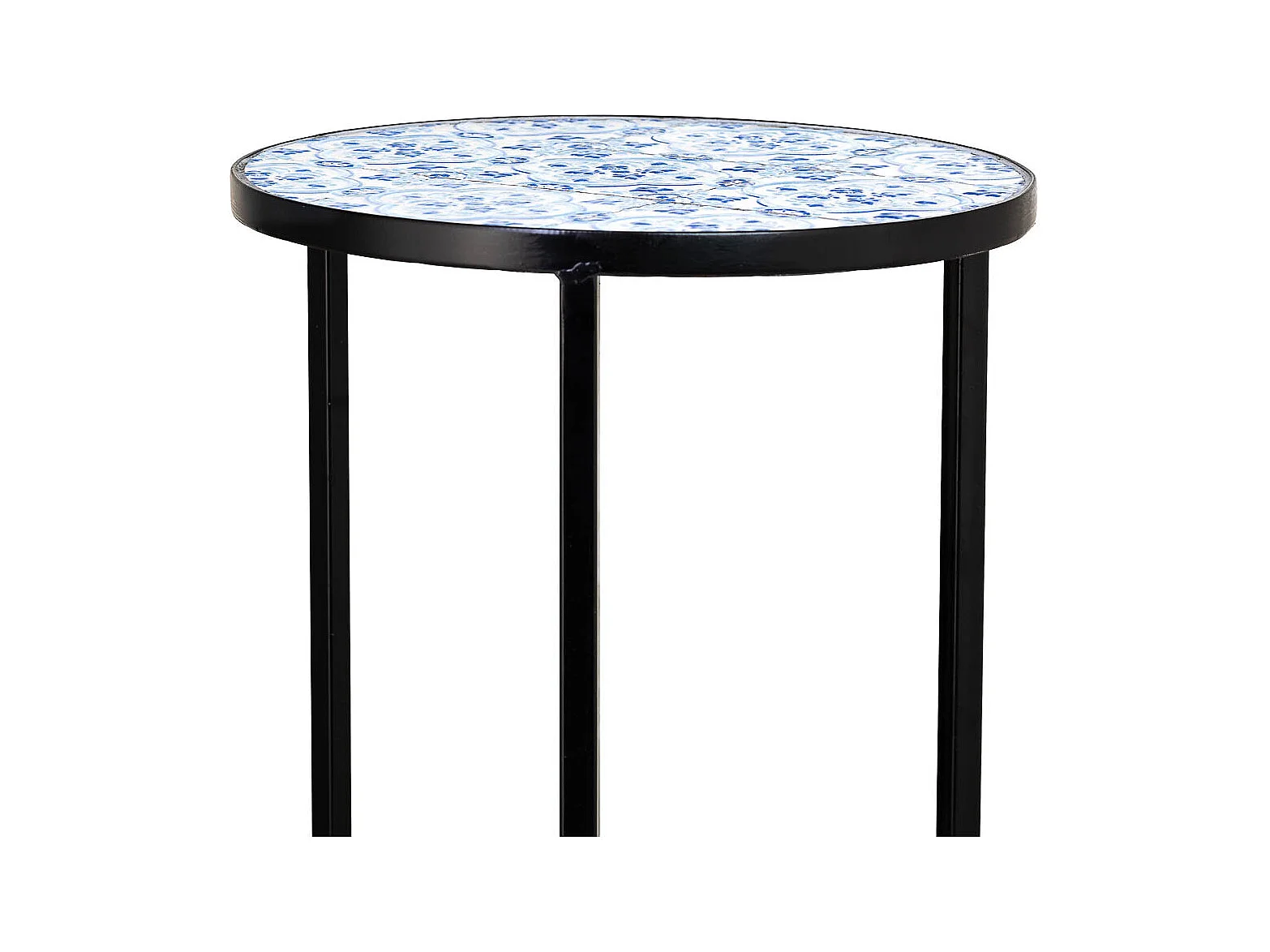 Ensemble de 3 pièces en mosaïque et supports en fer forgé noir D30x68h-D25x57h-D20x51h cm
