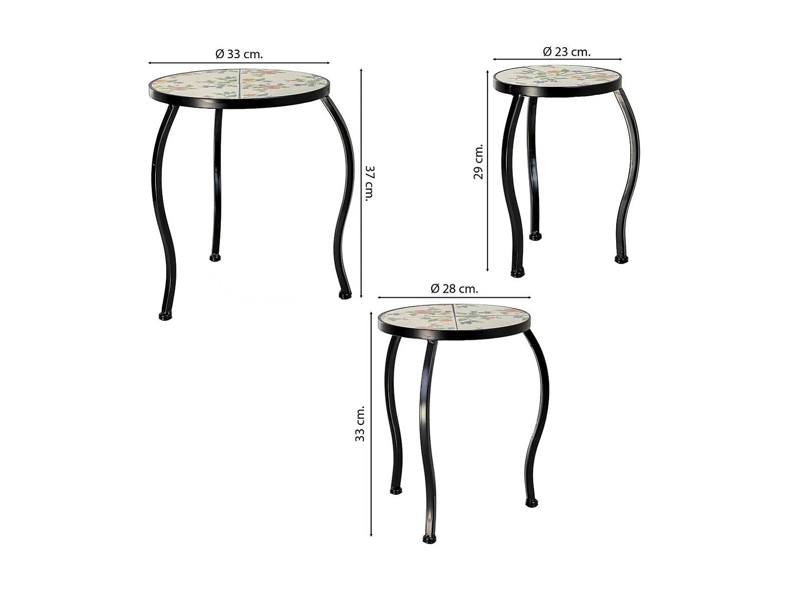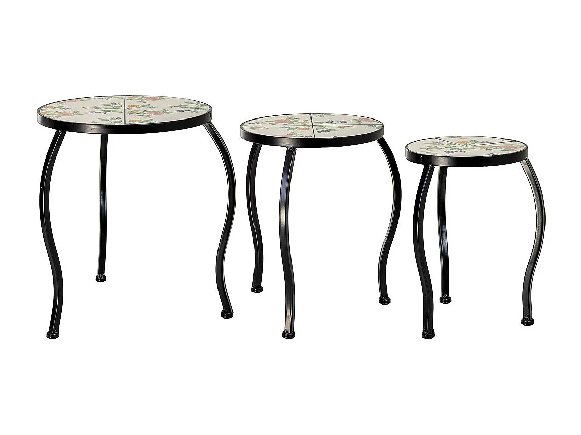 Ensemble de 3 supports en mosaïque et fer forgé, noir, 33 x 33 x 37 cm - 28 x 28 x 33 cm - 23 x 23 x 29 cm