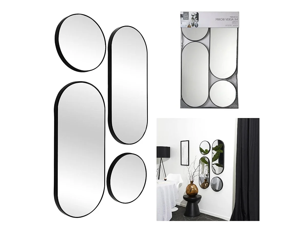 Ensemble de 4 Miroirs Déco Ronds et Ovale Noir - VILON