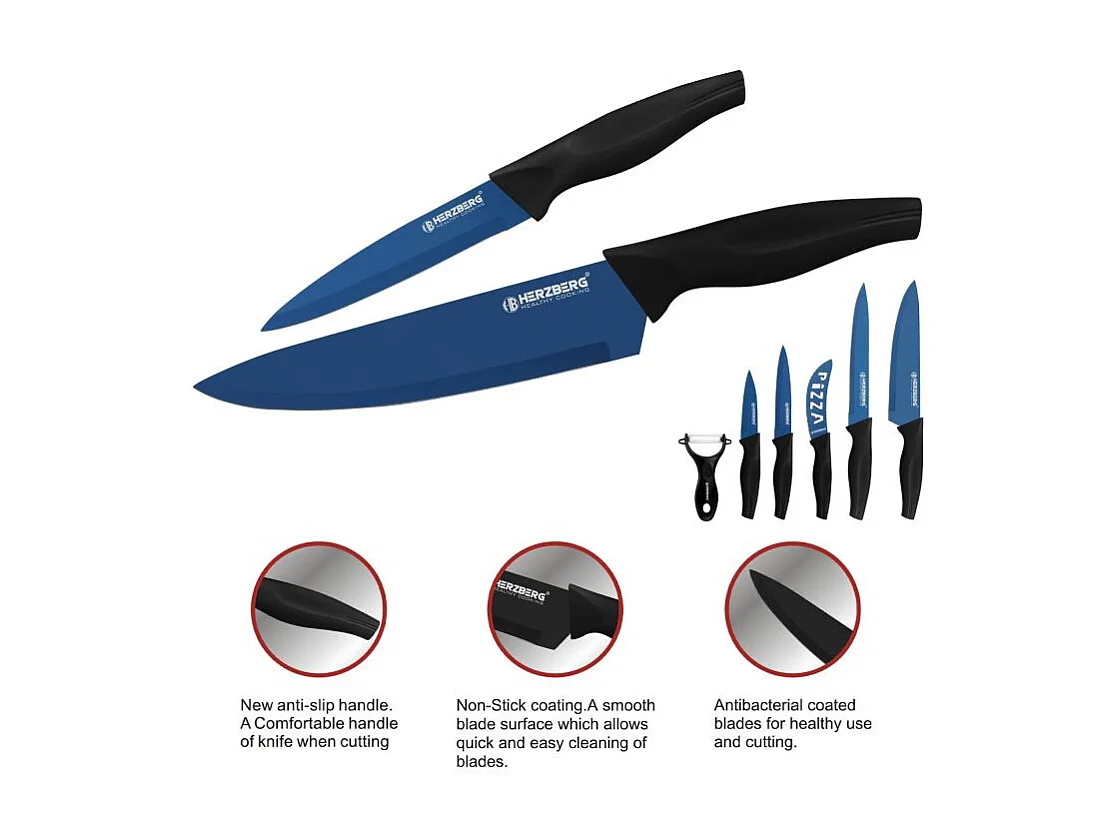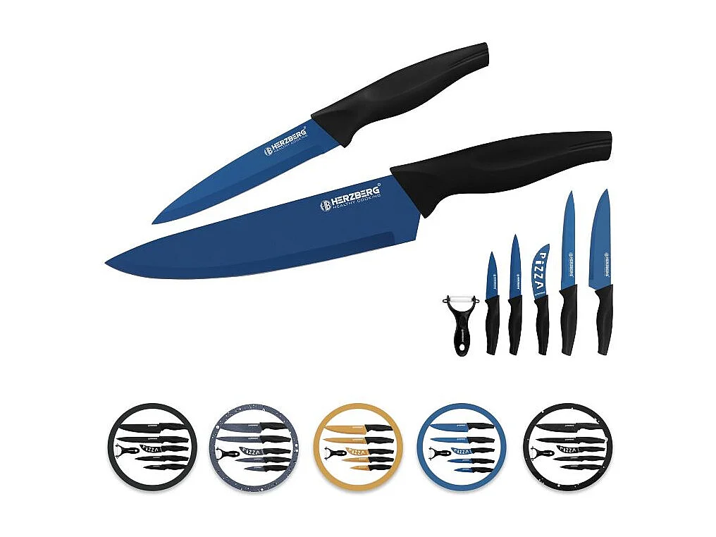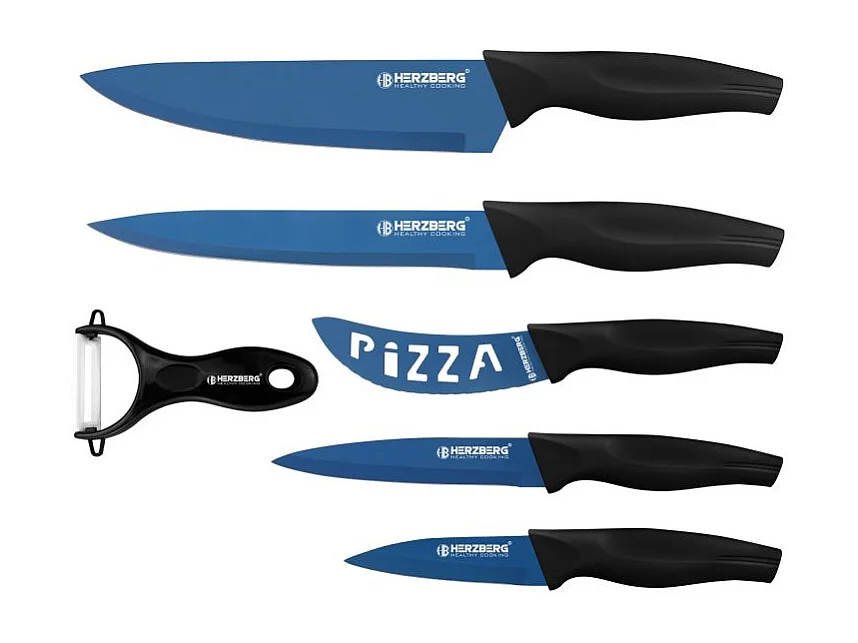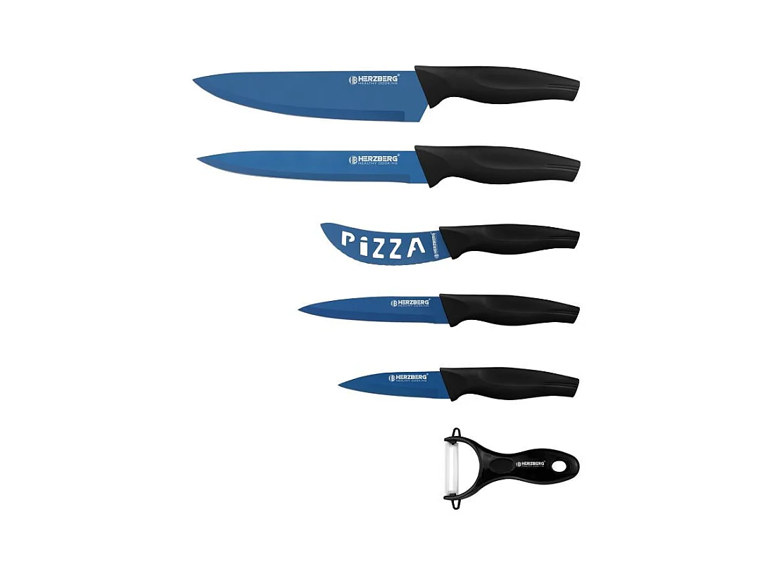 Set de 5 couteaux + économe bleu Herzberg HGKL6BLU