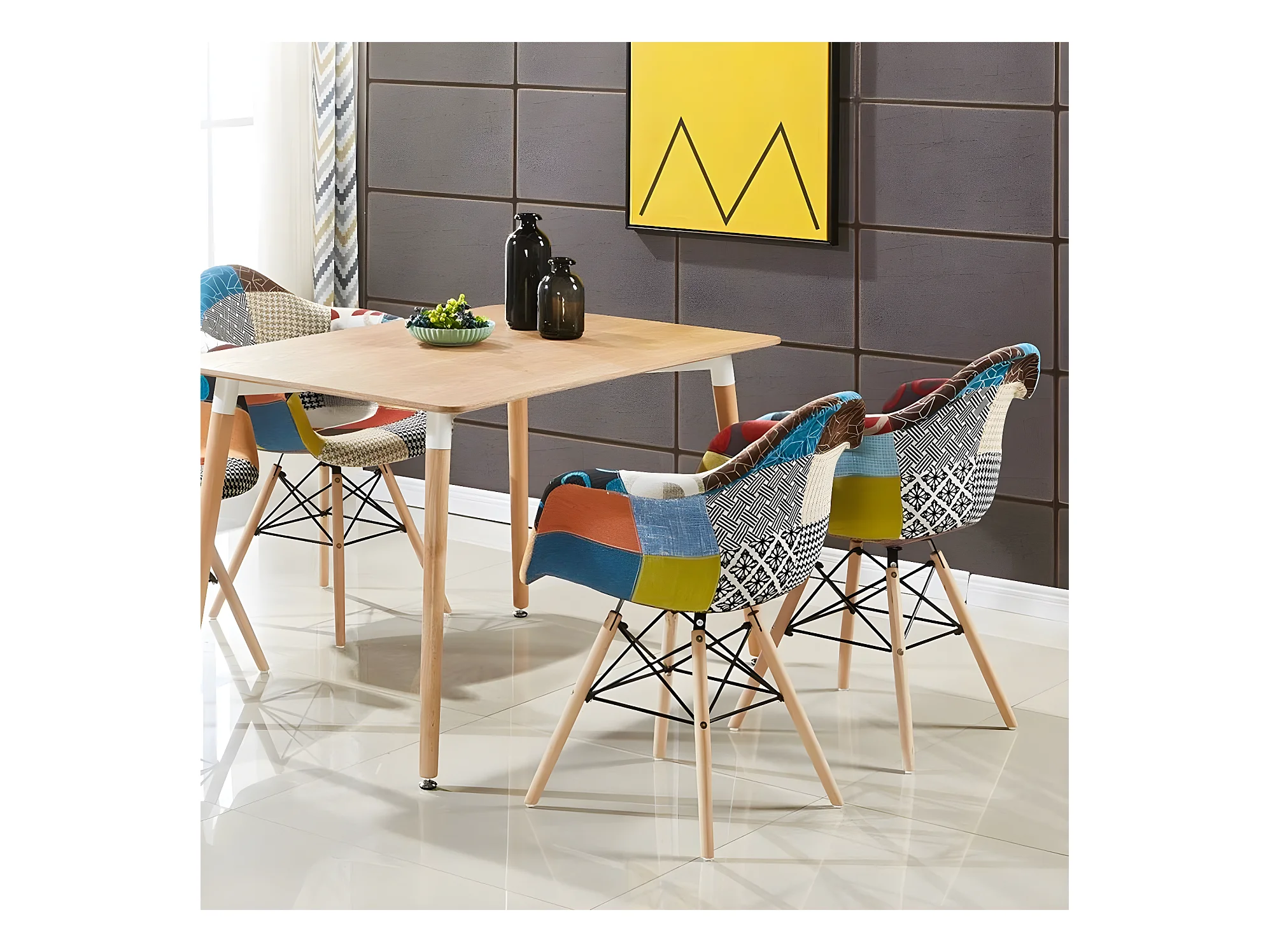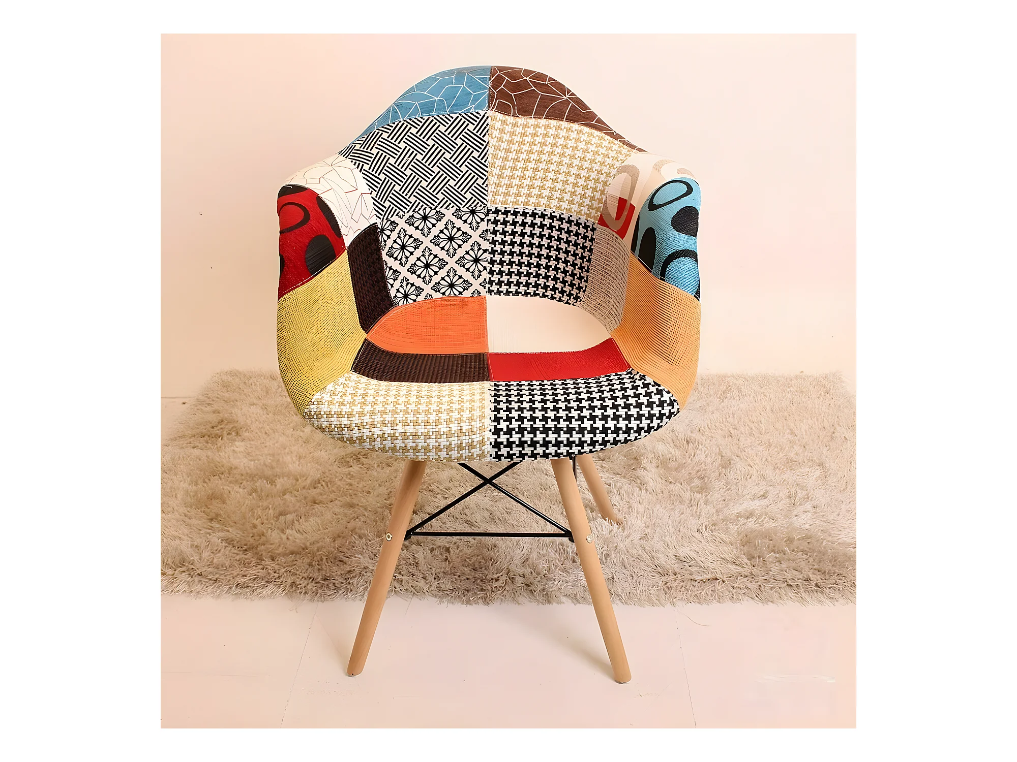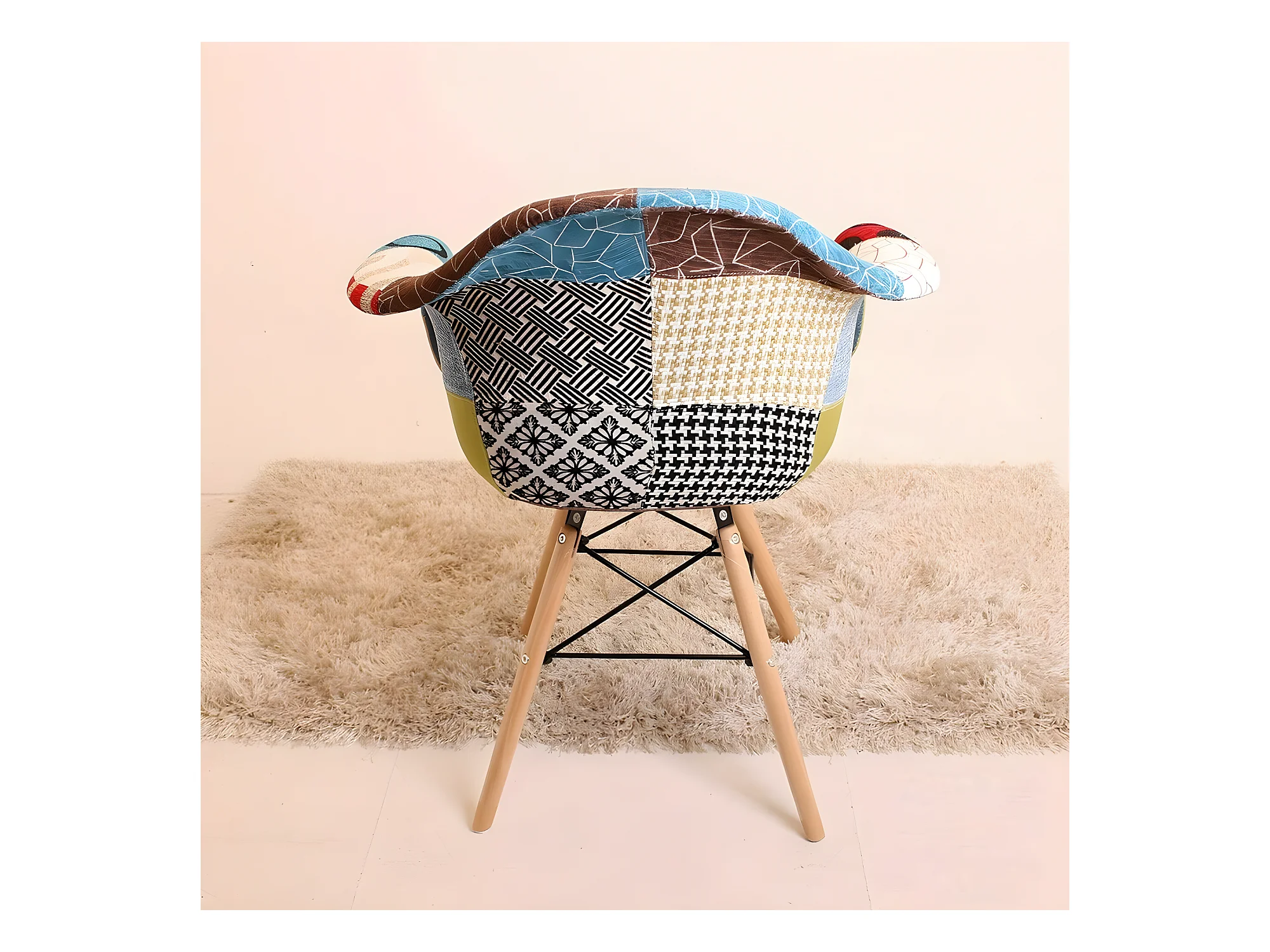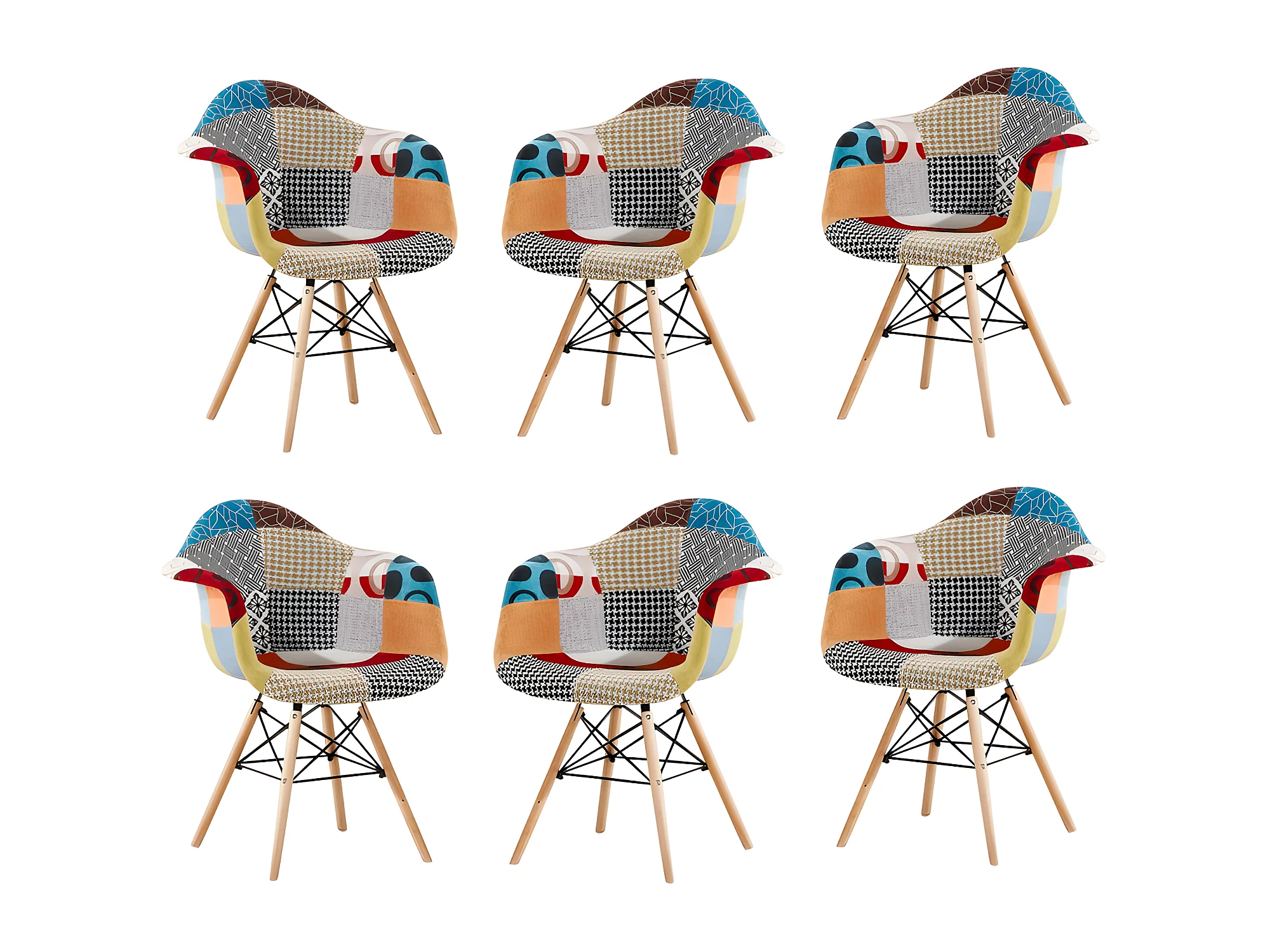 Ensemble de 6 fauteuils Moda patchwork Tub - Tissu recouvert de pieds en bois - Multicolore
