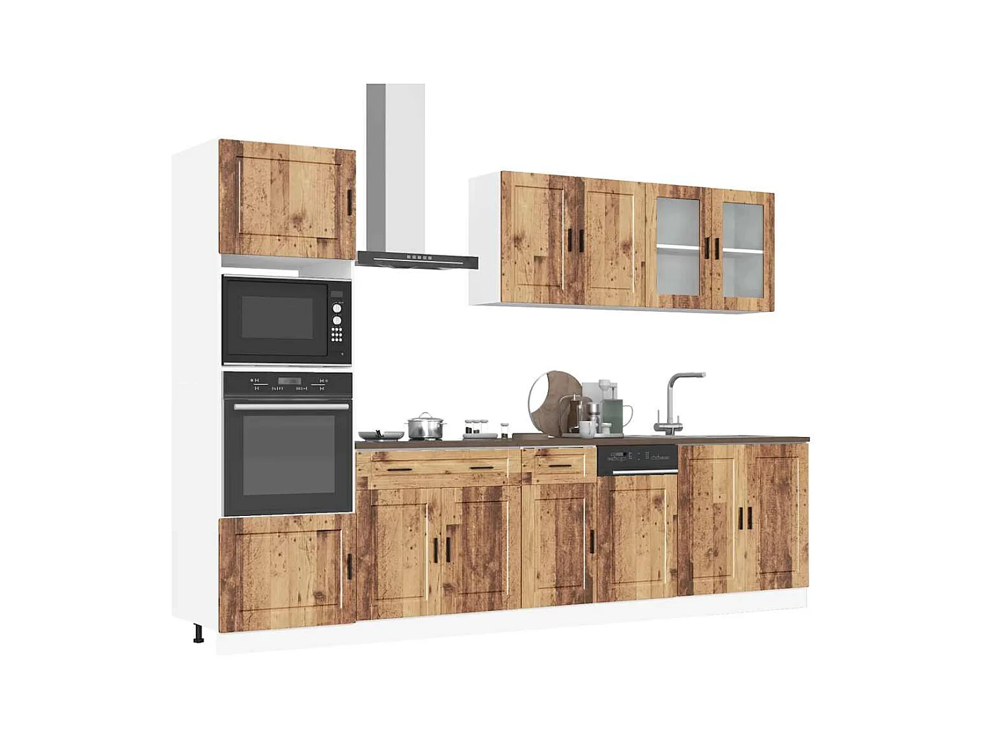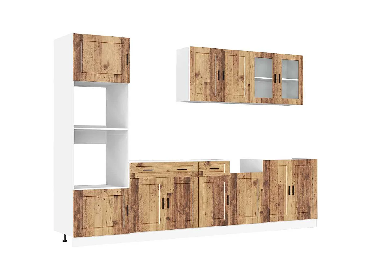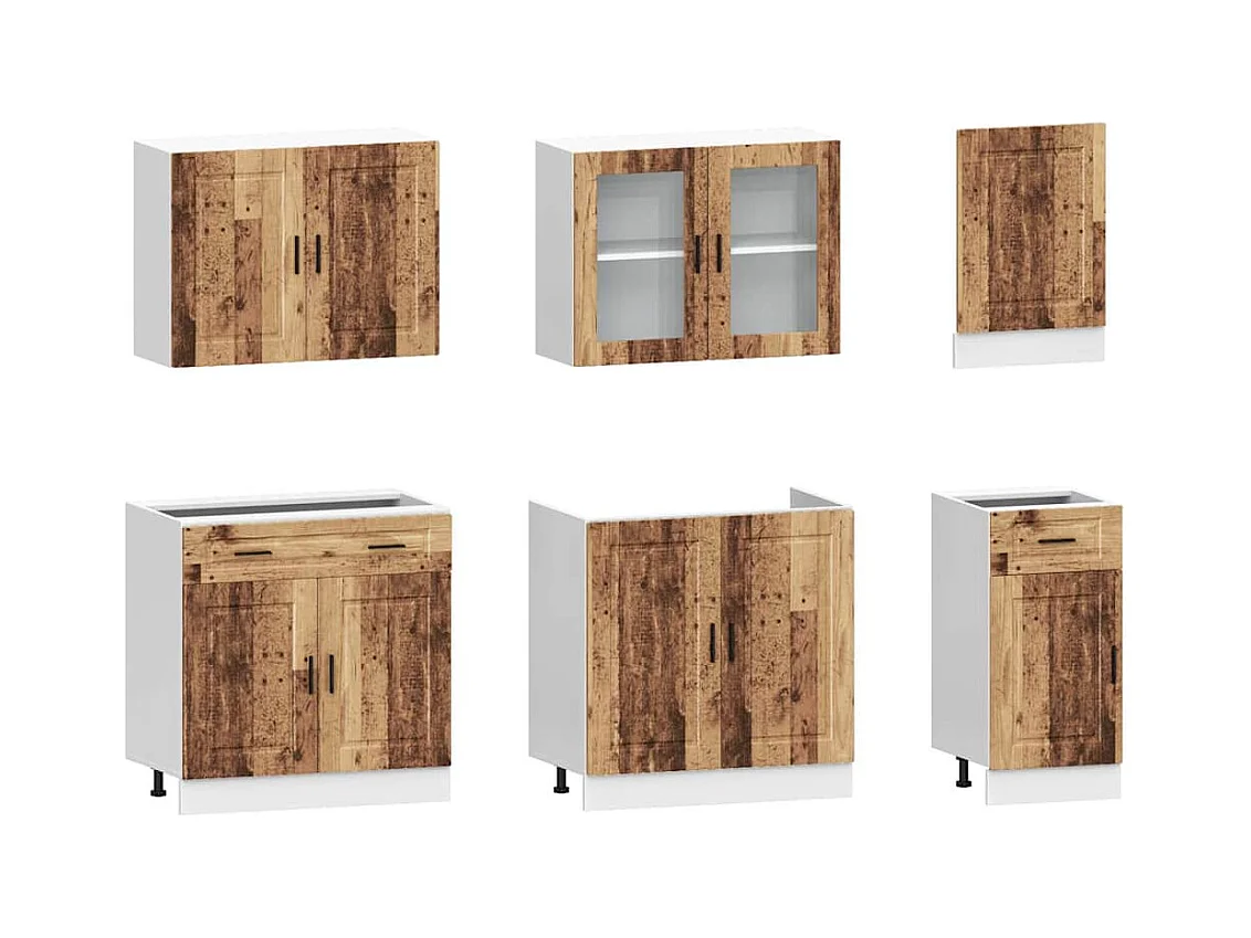Ensemble de 7 meubles de cuisine "Porto" en bois d'ingénierie vieilli