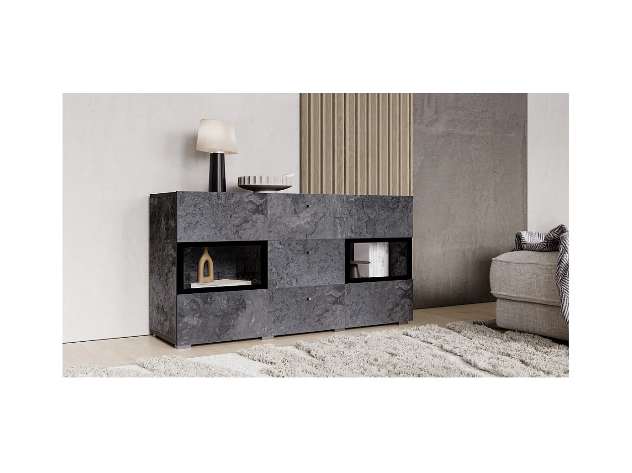 Ensemble salon complet RAMOS – Effet ardoise – 7 meubles avec LED multicolore intégrée
