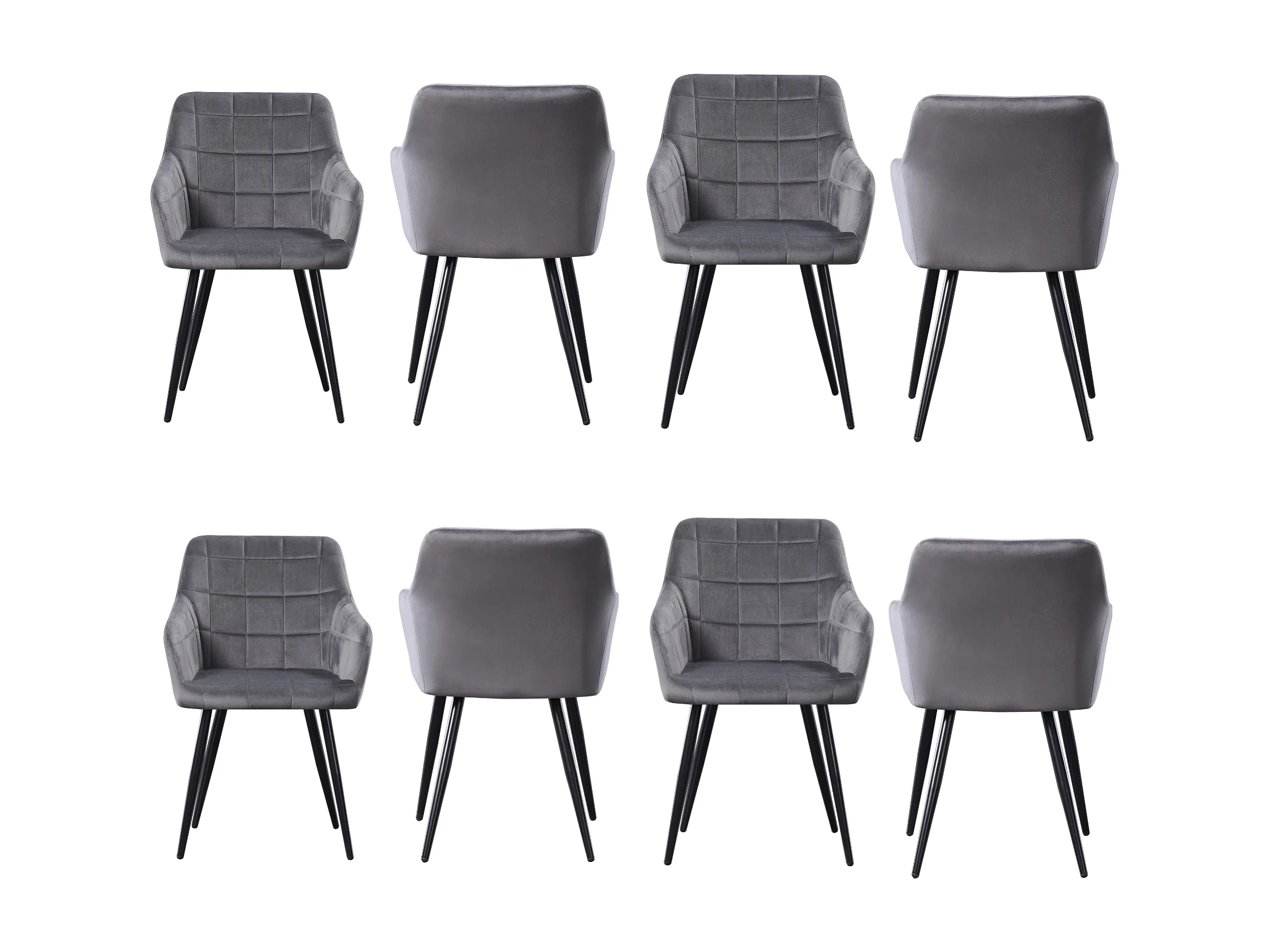 Ensemble de 8 chaises de salle à manger Camden - Tapissées de velours avec pieds en métal - Gris foncé