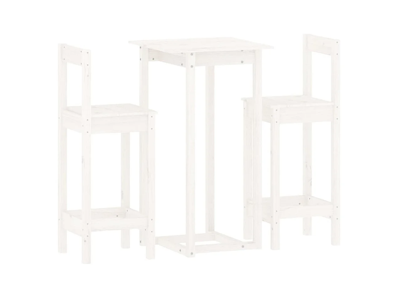 Ensemble de bar 3 pcs Blanc Bois de pin massif