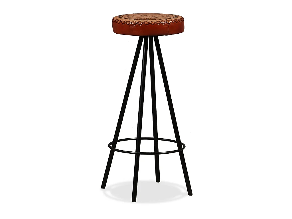 Ensemble de bar 3 pcs Bois de récupération Cuir véritable et toile