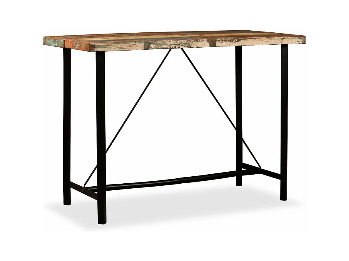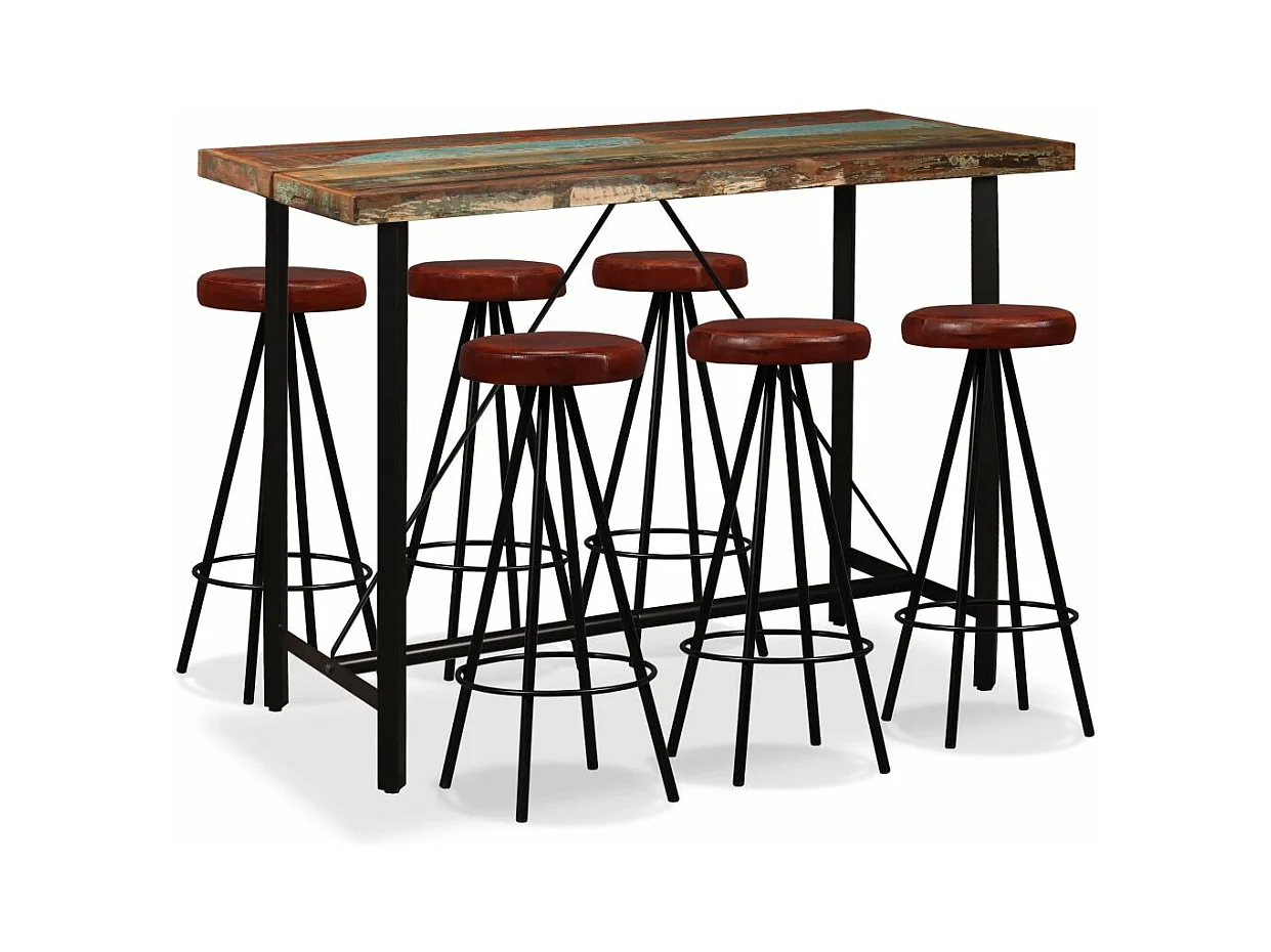 Ensemble de bar 7 pcs Bois massif recyclé et cuir véritable