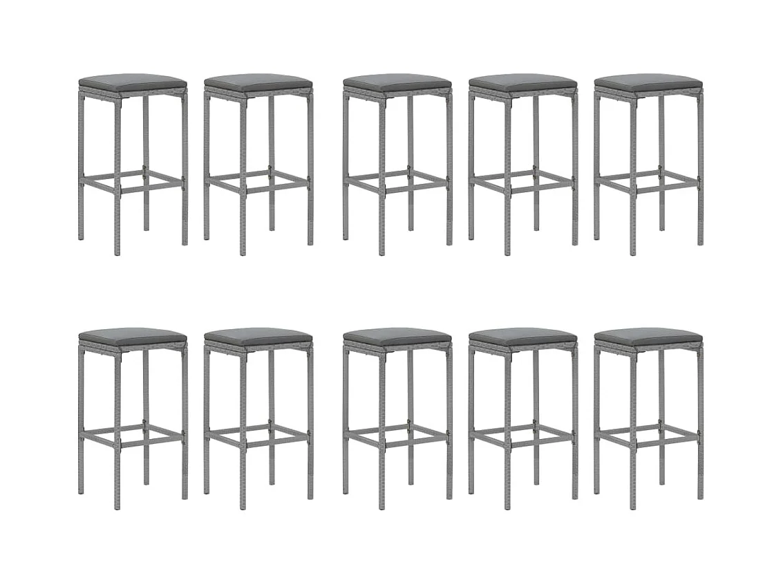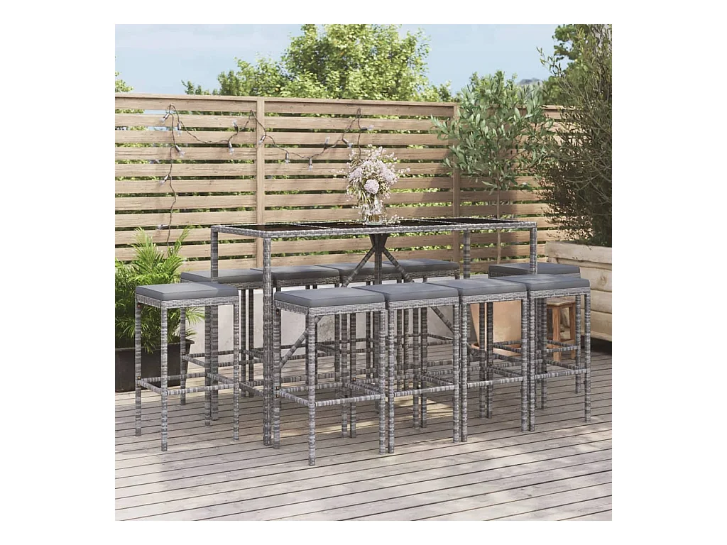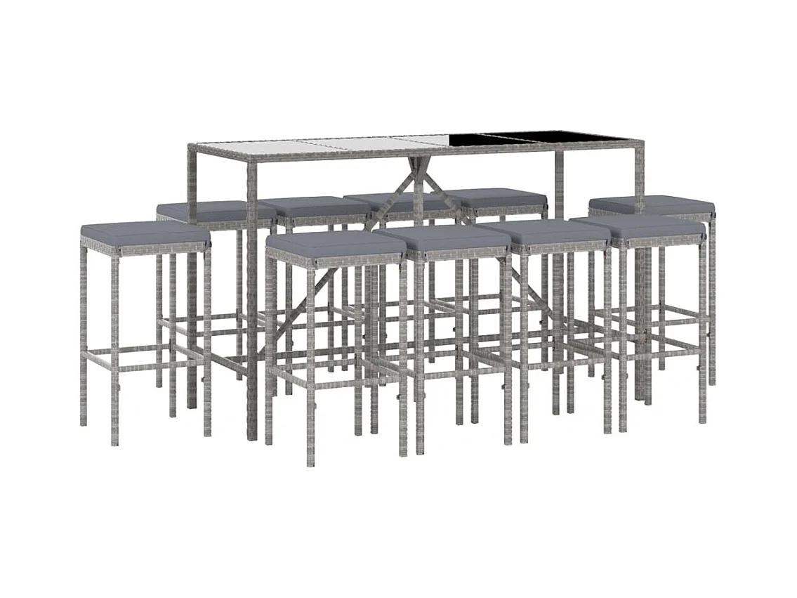 Ensemble de bar de jardin 11 pcs avec coussins gris poly rotin