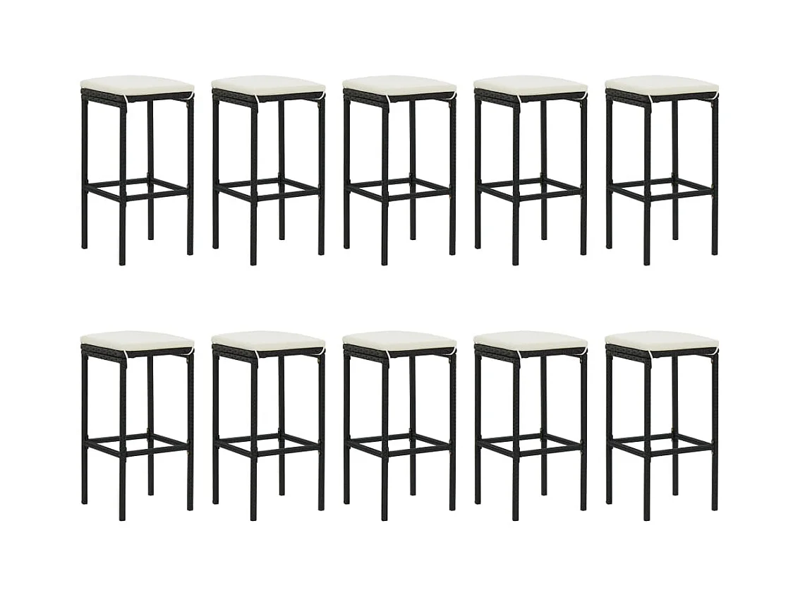 Ensemble de bar de jardin 11 pcs avec coussins noir poly rotin